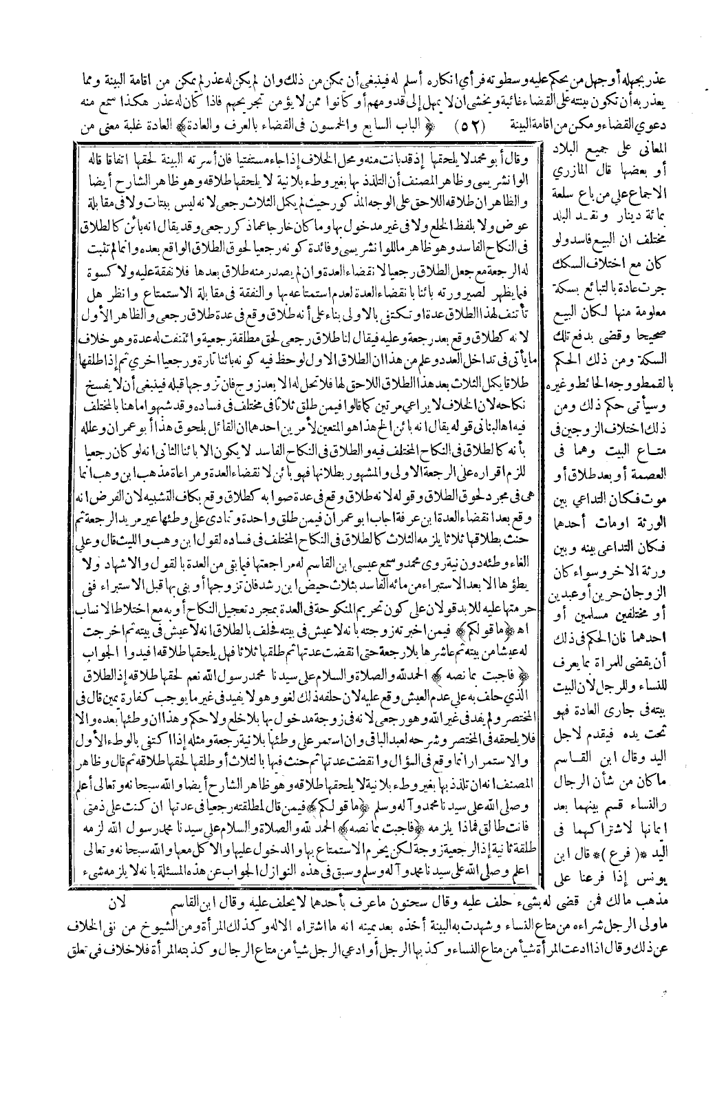 مَا نَصُّهُ، وَعَلَى الْأَوَّلِ فَالْأَظْهَرُ أَنَّهَا بَائِنَةٌ لِعَدَمِ مَعْرِفَةِ النَّاسِ الْيَوْمَ لِلطَّلَاقِ الرَّجْعِيِّ فَلَا يُرْتَدَفُ عَلَيْهَا شَيْءٌ اهـ لِمُخَالَفَتِهِ لِأُصُولِ الْمَذْهَبِ فِي الطَّلَاقِ الْبَائِنِ مِنْ كَوْنِهِ قَبْلَ الدُّخُولِ أَوْ خُلْعًا أَوْ بَالِغًا الْغَايَةَ، وَفِي النِّكَاحِ الْمُخْتَلَفِ فِي صِحَّتِهِ مِنْ لَحَاقِ طَلَاقِهِ كَالصَّحِيحِ، وَفِي نِيَّةِ الْوَاحِدَةِ الْبَائِنَةِ بِأَيِّ لَفْظٍ مِنْ إيجَابِهَا لِلثَّلَاثَةِ، وَلِمُخَالَفَتِهِ لِمَا فِي زَمَنِنَا مِنْ تَمْيِيزِ الْعَامَّةِ بَيْنَ الرَّجْعِيِّ، وَالْبَائِنِ فَالتَّمَسُّكُ بِهِ فِي إسْقَاطِ الطَّلَاقِ الثَّلَاثِ جَهْلٌ مَرْكَبٌ، وَضَلَالٌ مُبِينٌ، وَتَحَيُّلٌ عَلَى تَحْصِيلِ عَرَضٍ يَسِيرٍ مِنْ دَنِيءِ الدُّنْيَا بِإِفْسَادِ الدِّينِ فَإِنَّا لِلَّهِ، وَإِنَّا إلَيْهِ رَاجِعُونَ، وَلَا حَوْلَ، وَلَا قُوَّةَ إلَّا بِاَللَّهِ الْعَلِيِّ الْعَظِيمِ، وَصَلَّى اللَّهُ عَلَى سَيِّدِنَا مُحَمَّدٍ وَآلِهِ وَسَلَّمَ، ثُمَّ رَأَيْت جَوَابًا لِبَعْضِ مُفْتِي الْمَغْرِبِ فِيهِ مَا نَصُّهُ: قَالَ: الشَّيْخُ أَبُو عَلِيِّ بْنُ رَحَّالٍ فِي حَاشِيَتِهِ عَلَى التُّحْفَةِ عَلَى قَوْلِ ابْنِ النَّاظِمِ لِعَدَمِ مَعْرِفَةِ النَّاسِ الْيَوْمَ الطَّلَاقَ الرَّجْعِيَّ مَا نَصُّهُ الصَّوَابُ أَنَّ اللَّهَ تَعَالَى قَسَّمَ الطَّلَاقَ إلَى بَائِنٍ، وَإِلَى رَجْعِيٍّ فَالْبَائِنُ مَا وُجِدَتْ فِيهِ أَسْبَابُهُ، وَغَيْرُهُ رَجْعِيٌّ، وَلَمْ يُفَرِّقْ الشَّارِعُ بَيْنَ عَالِمٍ، وَجَاهِلٍ فَالصَّوَابُ أَنَّهَا رَجْعِيَّةٌ هَذَا الَّذِي تَشُدُّ يَدَك عَلَيْهِ، وَلَا تُعَوِّلْ عَلَى مَنْ قَالَ بِخِلَافِهِ مِمَّنْ تَأَخَّرَ اهـ.
