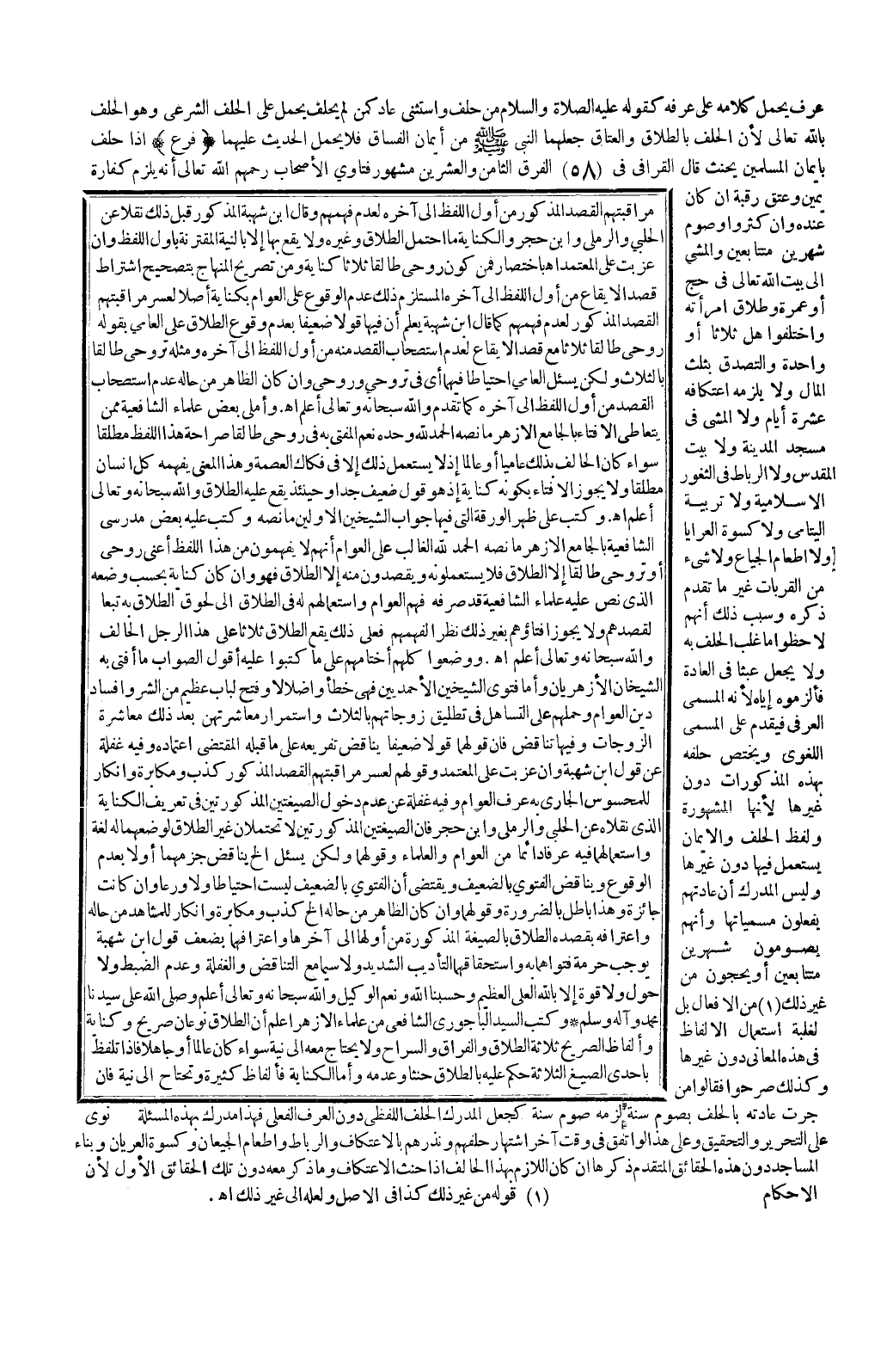 فَأَجَبْت بِمَا نَصُّهُ: الْحَمْدُ لِلَّهِ، وَالصَّلَاةُ وَالسَّلَامُ عَلَى سَيِّدِنَا مُحَمَّدٍ رَسُولِ اللَّهِ نَعَمْ لَا يَقَعُ عَلَيْهِ الطَّلَاقُ، وَالْحَالَةُ هَذِهِ لِلْإِكْرَاهِ، وَقَدْ تَقَدَّمَتْ النُّصُوصُ بِذَلِكَ، وَالنِّيَّةُ الْمَذْكُورَةُ لَوْ تَجَرَّدَتْ عَنْ الْإِكْرَاهِ قُبِلَتْ فِي الْفَتْوَى دُونَ الْقَضَاءِ لِمُخَالَفَتِهَا لِظَاهِرِ لَفْظِهِ مُخَالَفَةً قَرِيبَةً مِنْ الْمُسَاوَاةِ قَالَ فِي الْمَجْمُوعِ فَإِنْ رَجَحَ عَدَمُهَا، وَقَرُبَتْ كَبِقَدَمِهِ فِي لَا يَطَؤُهَا، وَشَهْرٍ لَا فِي كَلَّمَهُ، وَتَوْكِيلِهِ فِي لَا يَفْعَلْ كَذَا، وَسَمْنُ ضَأْنٍ فِي لَا آكُلُ سَمْنًا قُبِلَتْ إلَّا أَنْ تَرْفَعَهُ الْبَيِّنَةُ أَوْ يُقِرَّ فِي الطَّلَاقِ، وَالْعِتْقِ الْمُعَيَّنِ اهـ.