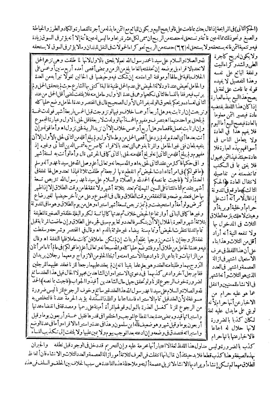 الثَّانِي: أَنَّهُ لَوْ كَانَ رَجْعِيًّا لَلَزِمَ إقْرَارُهُ عَلَى الرَّجْعَةِ الْأُولَى، وَالْمَشْهُورُ بُطْلَانُهَا فَهُوَ بَائِنٌ لِانْقِضَاءِ الْعِدَّةِ، وَمُرَاعَاةِ مَذْهَبِ ابْنِ وَهْبٍ إنَّمَا هِيَ فِي مُجَرَّدِ لُحُوقِ الطَّلَاقِ، وَقَوْلُهُ: لِأَنَّهُ طَلَاقٌ وَقَعَ فِي عِدَّةٍ صَوَابُهُ كَطَلَاقٍ وَقَعَ بِكَافِ التَّشْبِيهِ؛ لِأَنَّ الْفَرْضَ أَنَّهُ وَقَعَ بَعْدَ انْقِضَاءِ الْعِدَّةِ ابْنُ عَرَفَةَ أَجَابَ أَبُو عِمْرَانَ فِيمَنْ طَلَّقَ وَاحِدَةً، وَتَمَادَى عَلَى وَطْئِهَا غَيْرَ مُرِيدٍ الرَّجْعَةَ، ثُمَّ حَنِثَ بِطَلَاقِهَا ثَلَاثًا يَلْزَمُهُ الثَّلَاثُ كَالطَّلَاقِ فِي النِّكَاحِ الْمُخْتَلَفِ فِي فَسَادِهِ لِقَوْلِ ابْنِ وَهْبٍ وَاللَّيْثِ قَالَ: وَعَلَى إلْغَاءِ وَطْئِهِ دُونَ نِيَّةٍ رَوَى مُحَمَّدٌ، وَسَمِعَ عِيسَى ابْنَ الْقَاسِمِ لَهُ مُرَاجَعَتُهَا فِيمَا بَقِيَ مِنْ الْعِدَّةِ بِالْقَوْلِ، وَالْإِشْهَادِ، وَلَا يَطَؤُهَا إلَّا بَعْدَ الِاسْتِبْرَاءِ مِنْ مَائِهِ الْفَاسِدِ بِثَلَاثِ حِيَضٍ ابْنُ رُشْدٍ فَإِنْ تَزَوَّجَهَا، وَبَنَى بِهَا قَبْلَ الِاسْتِبْرَاءِ فَفِي حُرْمَتِهَا عَلَيْهِ لِلْأَبَدِ قَوْلَانِ عَلَى كَوْنِ تَحْرِيمِ الْمَنْكُوحَةِ فِي الْعِدَّةِ بِمُجَرَّدِ تَعْجِيلِ النِّكَاحِ أَوْ بِهِ مَعَ اخْتِلَاطِ الْأَنْسَابِ اهـ.