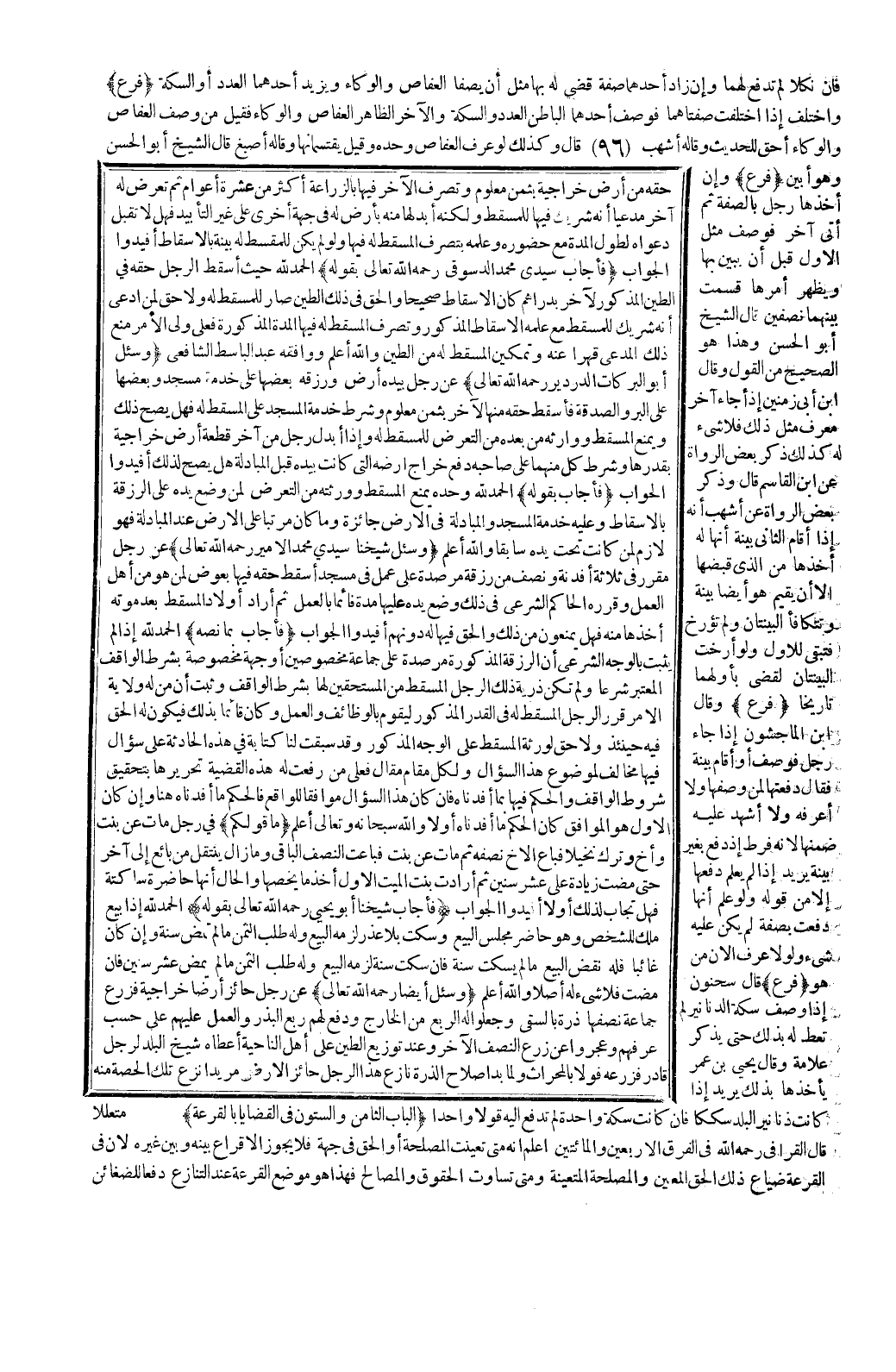وَفِي الْفَتَاوَى الْخَيْرِيَّةِ الْمُزَارِعُ فِي أَرْضِ بَيْتِ مَالِ الْمُسْلِمِينَ، وَلَهُ فِيهَا حَقُّ الْقَرَارِ وَتَرْكِهَا بِاخْتِيَارِهِ لِغَيْرِهِ فِي نَظِيرِ دَرَاهِمَ أَخَذَهَا أَوْ تَرَكَهَا مِنْ غَيْرِ أَخْذِ دَرَاهِمَ بِاخْتِيَارِهِ سَقَطَ حَقُّهُ مِنْهَا، وَصَارَ الْحَقُّ لِلْمُسْقَطِ لَهُ، وَلَيْسَ لَهُ بَعْدَ ذَلِكَ اسْتِرْدَادُهَا، وَلَا لِوَرَثَتِهِ مِنْ بَعْدِهِ اهـ. فَلَيْسَ لِوَرَثَةِ بَائِعِ الْقِطْعَةِ الطِّينِ الْمُطَالَبَةُ بِرَدِّ الْبَيْعِ، وَالْمَبِيعُ وَالْإِسْقَاطُ لِلْمُشْتَرِي صَحِيحَانِ، وَصَارَ الْحَقُّ فِي الْقِطْعَةِ الطِّينِ مِنْ غَيْرِ نِزَاعِ أَحَدٍ، وَحِينَئِذٍ فَتُمْنَعُ وَرَثَةُ الْبَائِعِ عَنْ مُعَارَضَةِ الْمُشْتَرِي قَهْرًا عَلَيْهِمْ، وَطَلَبُهُمْ رَدَّ الْبَيْعِ عِنَادٌ لَا فَائِدَةَ فِيهِ فَلِمَنْ لَهُ وِلَايَةُ الْأَمْرِ مَنْعُهُمْ عَنْ ذَلِكَ وَيُثَابُ عَلَيْهِ الثَّوَابَ الْجَزِيلَ، وَاَللَّهُ سُبْحَانَهُ وَتَعَالَى أَعْلَمُ كَتَبَهُ مَنْصُورٌ الْمَنْصُورِيُّ الْحَنَفِيُّ عَفَا اللَّهُ عَنْهُ اهـ.