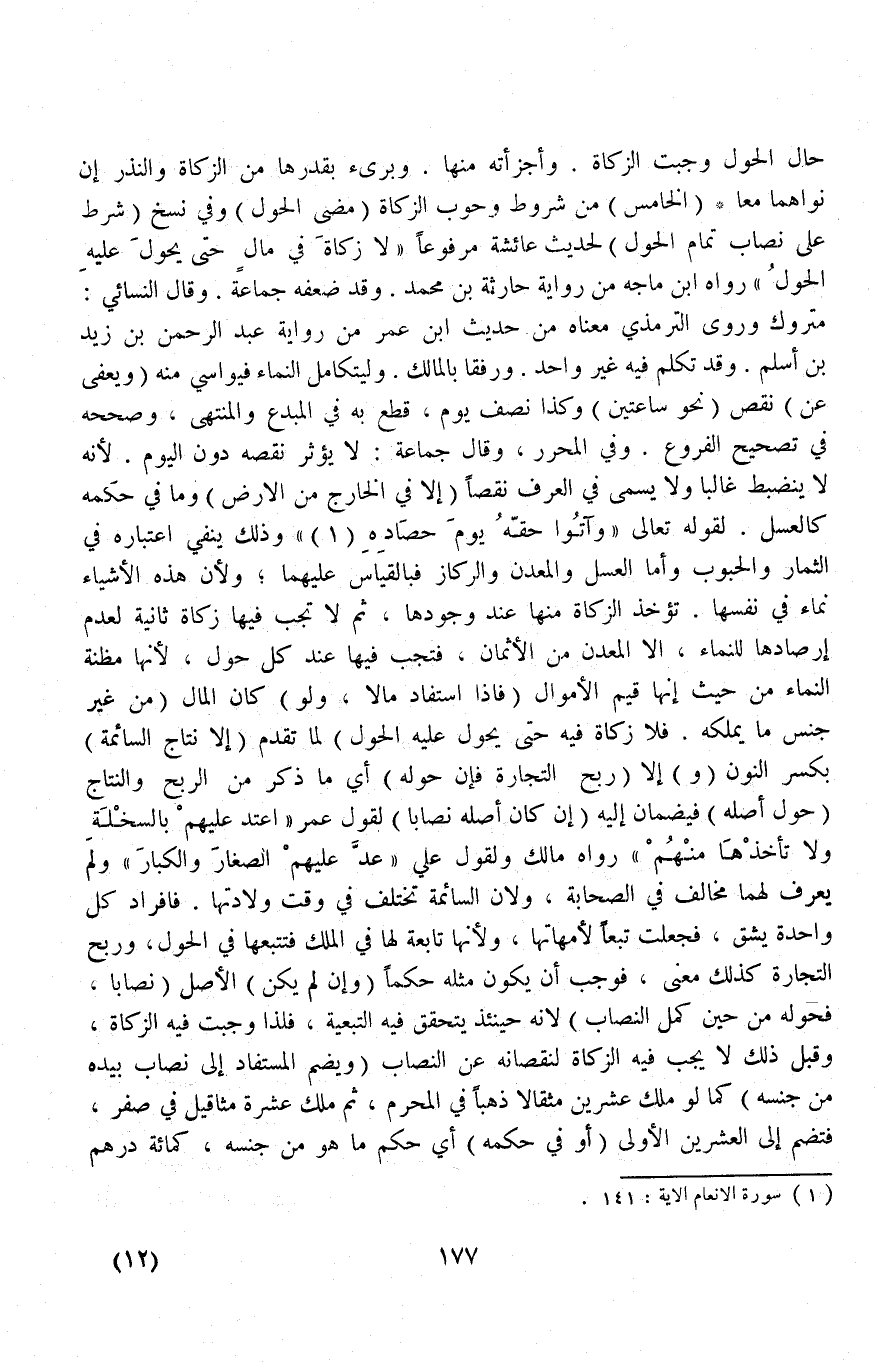 وَفِي الْمُحَرَّرِ وَقَالَ جَمَاعَةٌ: لَا يُؤَثِّرُ نَقْصُهُ دُونَ الْيَوْمِ لِأَنَّهُ لَا يَنْضَبِطُ غَالِبًا وَلَا يُسَمَّى فِي الْعُرْفِ نَقْصًا (إلَّا فِي الْخَارِجِ مِنْ الْأَرْضِ) وَمَا فِي حُكْمِهِ كَالْعَسَلِ لِقَوْلِهِ تَعَالَى: {وَآتُوا حَقَّهُ يَوْمَ حَصَادِهِ} [الأنعام: ١٤١] وَذَلِكَ يَنْفِي اعْتِبَارَهُ فِي الثِّمَارِ وَالْحُبُوبِ وَأَمَّا الْعَسَلُ وَالْمَعْدِنُ وَالرِّكَازُ فَبِالْقِيَاسِ عَلَيْهِمَا؛ وَلِأَنَّ هَذِهِ الْأَشْيَاءَ نَمَاءٌ فِي نَفْسِهَا تُؤْخَذُ الزَّكَاةُ مِنْهَا عِنْدَ وُجُودِهَا، ثُمَّ لَا تَجِبُ فِيهَا زَكَاةٌ ثَانِيَةٌ لِعَدَمِ إرْصَادِهَا لِلنَّمَاءِ، إلَّا الْمَعْدِنِ مِنْ الْأَثْمَانِ فَتَجِبْ فِيهَا عِنْدَ كُلِّ حَوْلٍ، لِأَنَّهَا مَظِنَّةُ النَّمَاءِ مِنْ حَيْثُ إنَّهَا قِيَمُ الْأَمْوَالِ (فَإِذَا اسْتَفَادَ مَالًا، وَلَوْ) كَانَ الْمَالُ (مِنْ غَيْرِ جِنْسِ مَا يَمْلِكُهُ فَلَا زَكَاةَ فِيهِ حَتَّى يَحُولَ عَلَيْهِ الْحَوْلُ) لِمَا تَقَدَّمَ (إلَّا نِتَاجَ السَّائِمَةِ) بِكَسْرِ النُّونِ.