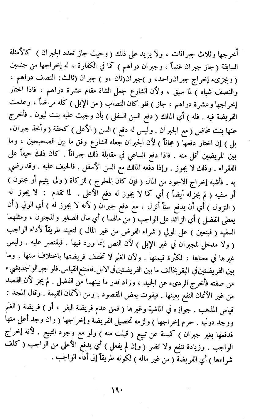 وَلَا يَزِيدُ عَلَى ذَلِكَ (وَحَيْثُ) جَازَ (تَعَدُّدُ الْجُبْرَانِ) كَالْأَمْثِلَةِ السَّابِقَةِ (جَازَ جُبْرَانُ غَنَمٍ، وَجُبْرَانُ دَرَاهِمَ) كَمَا فِي الْكَفَّارَةِ، لَهُ إخْرَاجُهَا مِنْ جِنْسَيْنِ (وَيُجْزِئُ إخْرَاجُ جُبْرَانٍ وَاحِدٍ، وَ) جُبْرَانٍ (ثَانٍ، وَ) جُبْرَانٍ (ثَالِثٍ: النِّصْفُ دَرَاهِمُ وَالنِّصْفُ شِيَاهٌ) لِمَا سَبَقَ، وَلِأَنَّ الشَّارِعَ جَعَلَ الشَّاةَ مَقَامَ عَشَرَةِ دَرَاهِمَ، (فَإِذَا اخْتَارَ إخْرَاجَهَا وَعَشَرَةَ دَرَاهِمَ، جَازَ) فَلَوْ كَانَ النِّصَابُ (مِنْ الْإِبِلِ) كُلُّهُ مِرَاضًا، (وَعُدِمَتْ الْفَرِيضَةُ فِيهِ فَلَهُ) أَيْ: الْمَالِكِ (دَفْعُ السِّنِّ السُّفْلَى) بِأَنْ وَجَبَتْ عَلَيْهِ بِنْتُ لَبُونٍ فَأَخْرَجَ عَنْهَا بِنْتَ مَخَاضٍ (مَعَ الْجُبْرَانِ وَلَيْسَ لَهُ دَفْعُ) السِّنِّ (الْأَعْلَى) كَحِقَّةٍ.