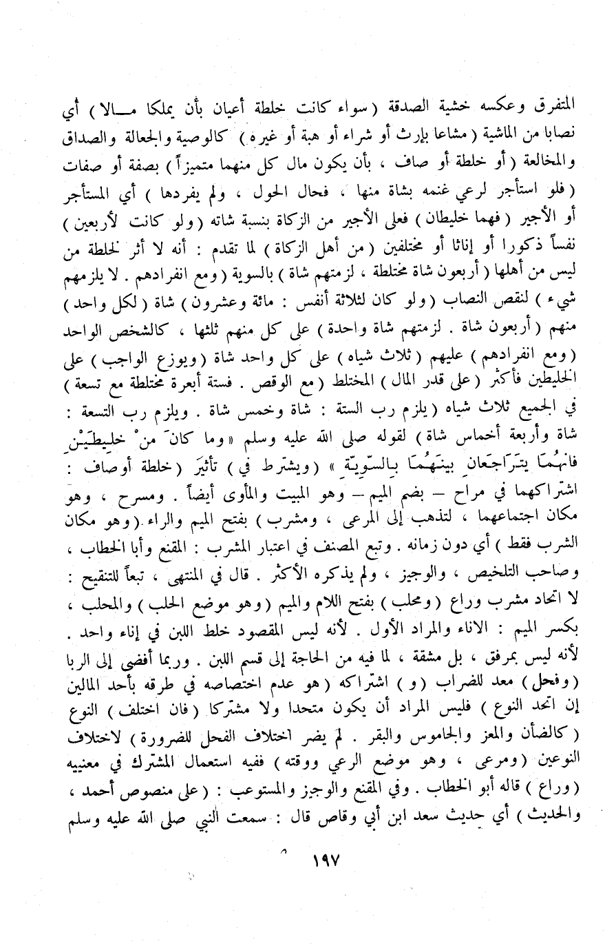 الْمُتَفَرِّقِ وَعَكْسِهِ خَشْيَةَ الصَّدَقَةِ (سَوَاءً كَانَتْ خُلْطَةَ أَعْيَانٍ بِأَنْ يَمْلِكَا مَالًا) أَيْ: نِصَابًا مِنْ الْمَاشِيَةِ (مُشَاعًا بِإِرْثٍ أَوْ شِرَاءٍ أَوْ هِبَةٍ أَوْ غَيْرِهِ) كَالْوَصِيَّةِ وَالْجَعَالَةِ وَالصَّدَاقِ وَالْمُخَالَعَةِ (أَوْ خُلْطَةِ أَوِصَافً، بِأَنْ يَكُونَ مَالُ كُلٍّ مِنْهُمَا مُتَمَيِّزًا) بِصِفَةٍ أَوْ صِفَاتٍ.