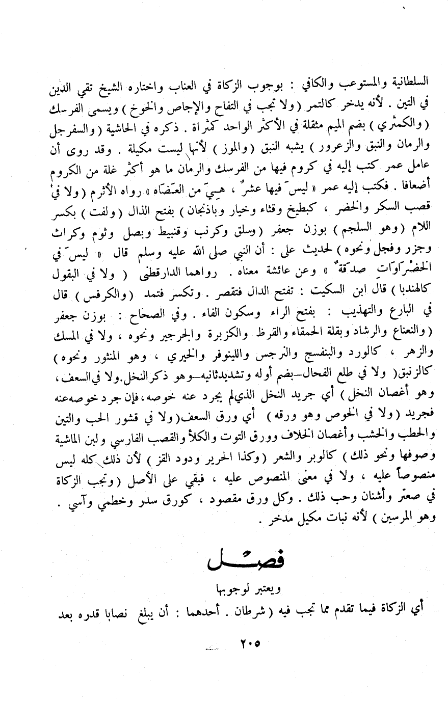 (فَصْل وَيُعْتَبَرُ لِوُجُوبِهَا) أَيْ الزَّكَاةِ فِيمَا تَقَدَّمَ مِمَّا تَجِبُ فِيهِ (شَرْطَانِ أَحَدُهُمَا: أَنْ يَبْلُغَ نِصَابًا قَدْرُهُ بَعْدَ