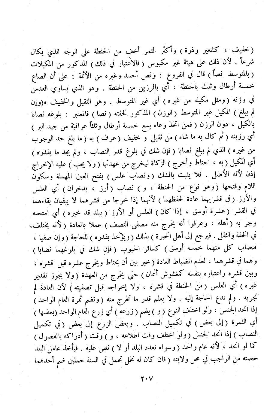 (خَفِيفٌ، كَشَعِيرٍ وَذُرَةٍ) وَأَكْثَرُ التَّمْرِ أَخَفُّ مِنْ الْحِنْطَةِ عَلَى الْوَجْهِ الَّذِي يُكَالُ شَرْعًا لِأَنَّ ذَلِكَ عَلَى هَيْئَةٍ غَيْر مَكْبُوسٍ (فَالِاعْتِبَارُ فِي ذَلِكَ) الْمَذْكُورِ مِنْ الْمَكِيلَاتِ (بِالْمُتَوَسِّطِ نَصًّا) قَالَ فِي الْفُرُوعِ: وَنَصَّ أَحْمَدُ وَغَيْرُهُ مِنْ الْأَئِمَّةِ عَلَى أَنَّ الصَّاعَ خَمْسَةُ أَرْطَالٍ وَثُلْث بِالْحِنْطَةِ، أَيْ بِالرَّزِينِ مِنْ الْحِنْطَةِ وَهُوَ الَّذِي يُسَاوِي الْعَدَسَ فِي وَزْنِهِ.