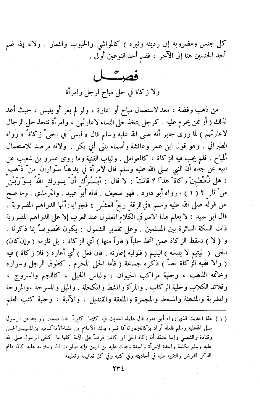 [فَصْلٌ وَلَا زَكَاةَ فِي حُلِيٍّ مُبَاحٍ لِرَجُلٍ وَامْرَأَةٍ]
