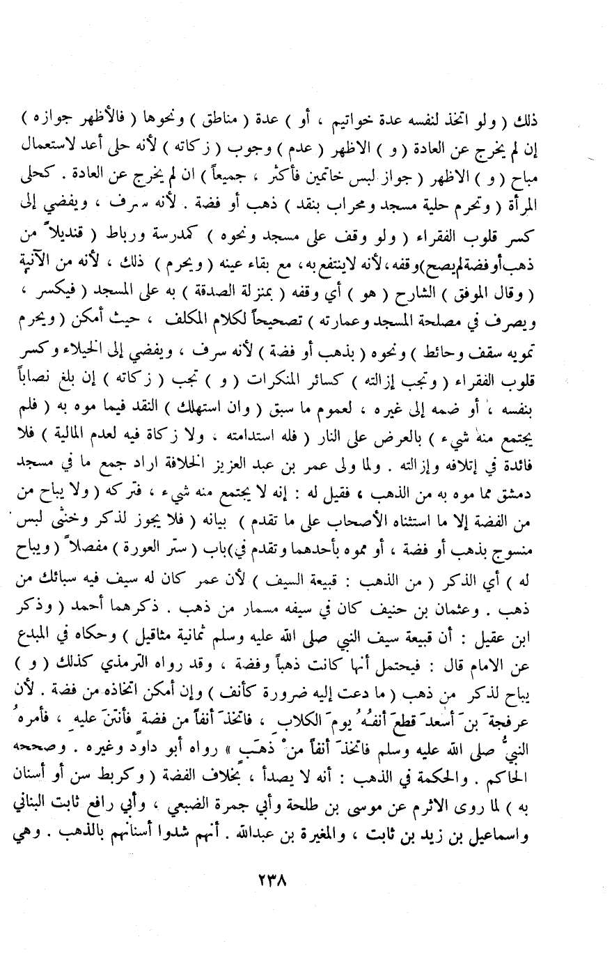 (وَذَكَرَ ابْنُ عَقِيلٍ: أَنَّ قَبِيعَةَ سَيْفِ النَّبِيِّ - صَلَّى اللَّهُ عَلَيْهِ وَسَلَّمَ - ثَمَانِيَةُ مَثَاقِيلَ) وَحَكَاهُ فِي الْمُبْدِعِ عَنْ الْإِمَامِ قَالَ: فَيُحْتَمَلُ أَنَّهَا كَانَتْ ذَهَبًا وَفِضَّةً وَقَدْ رَوَاهُ التِّرْمِذِيُّ كَذَلِكَ.