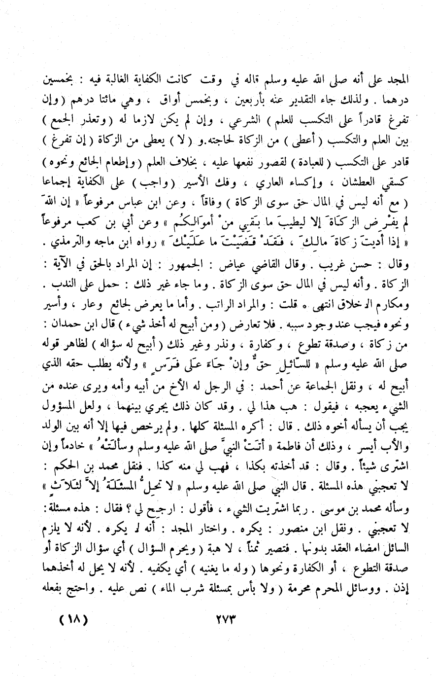 الْمَجْدُ عَلَى أَنَّهُ - صَلَّى اللَّهُ عَلَيْهِ وَسَلَّمَ - قَالَهُ فِي وَقْتٍ كَانَتْ الْكِفَايَةُ الْغَالِبَةُ فِيهِ بِخَمْسِينَ دِرْهَمًا، وَلِذَلِكَ جَاءَ التَّقْدِيرُ عَنْهُ بِأَرْبَعِينَ، وَبِخَمْسِ أَوَاقٍ، وَهِيَ مِائَتَا دِرْهَمٍ.