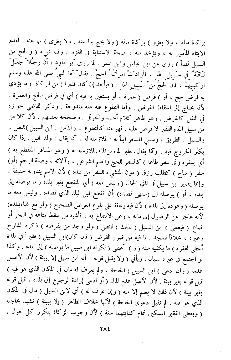 (وَهُوَ الْمُسَافِرُ الْمُنْقَطِعُ بِهِ) أَيْ بِسَفَرِهِ (فِي سَفَرِ طَاعَةٍ) كَالسَّفَرِ لِلْحَجِّ وَالْعِلْمِ الشَّرْعِيِّ، وَآلَاتِهِ، وَصِلَةِ الرَّحِمِ (أَوْ) سَفَرٍ (مُبَاحٍ) كَطَلَبِ رِزْقٍ (دُونَ الْمُنْشِئِ لِلسَّفَرِ مِنْ بَلَدِهِ) ؛ لِأَنَّ الِاسْمَ يَتَنَاوَلُهُ حَقِيقَةً، وَإِنَّمَا يَصِيرُ ابْنَ سَبِيلٍ فِي ثَانِي الْحَالِ (وَلَيْسَ مَعَهُ) أَيْ الْمُنْقَطِعِ بِغَيْرِ بَلَدِهِ (مَا يُوَصِّلُهُ إلَى بَلَدِهِ أَوْ) يُوَصِّلُهُ إلَى (مُنْتَهَى قَصْدِهِ) بِأَنْ انْقَطَعَ قَبْلَ الْبَلَدِ الَّذِي قَصَدَهُ وَلَيْسَ مَعَهُ مَا يُوَصِّلُهُ.
