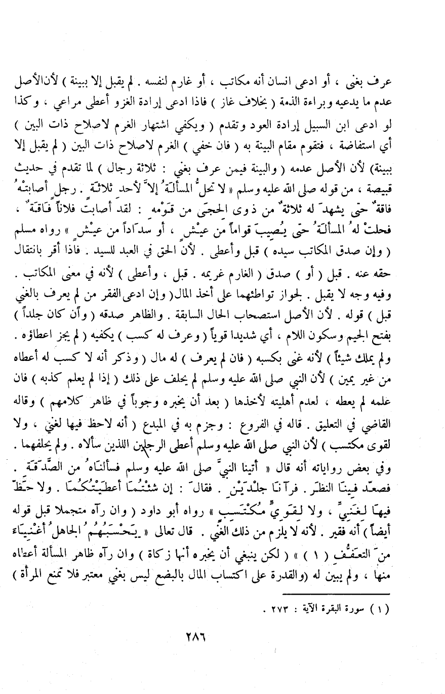 عُرِفَ بِغِنًى أَوْ ادَّعَى إنْسَانٌ أَنَّهُ مُكَاتَبٌ، أَوْ غَارِمٌ لِنَفْسِهِ، لَمْ يُقْبَلْ إلَّا بِبَيِّنَةٍ) ؛ لِأَنَّ الْأَصْلَ عَدَمُ مَا يَدَّعِيهِ وَبَرَاءَةُ الذِّمَّةِ (بِخِلَافِ غَازٍ) فَإِذَا ادَّعَى إرَادَةَ الْغَزْوِ أُعْطِيَ مُرَاعًى وَكَذَا لَوْ ادَّعَى ابْنُ السَّبِيلِ إرَادَةَ الْعَوْدِ وَتَقَدَّمَ.