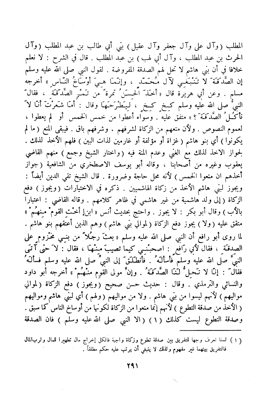 (وَآلُ الْحَارِثِ بْنِ عَبْدِ الْمُطَّلِبِ وَآلُ أَبِي لَهَبِ) بْنِ عَبْدِ الْمُطَّلِبِ، قَالَ فِي الشَّرْحِ: لَا نَعْلَمُ خِلَافًا فِي أَنَّ بَنِي هَاشِمٍ لَا تَحِلُّ لَهُمْ الصَّدَقَةُ الْمَفْرُوضَةُ لِقَوْلِ النَّبِيِّ - صَلَّى اللَّهُ عَلَيْهِ وَسَلَّمَ - «إنَّ الصَّدَقَةَ لَا تَنْبَغِي لِآلِ مُحَمَّدٍ وَإِنَّمَا هِيَ أَوْسَاخُ النَّاسِ» أَخْرَجَهُ مُسْلِمٌ وَعَنْ أَبِي هُرَيْرَةَ قَالَ: «أَخَذَ الْحَسَنُ تَمْرَةً مِنْ تَمْرِ الصَّدَقَةِ فَقَالَ النَّبِيُّ: - صَلَّى اللَّهُ عَلَيْهِ وَسَلَّمَ - كِخْ كِخْ لِيَطْرَحَهَا وَقَالَ أَمَا شَعَرْتَ أَنَّا لَا نَأْكُلُ الصَّدَقَةَ؟» مُتَّفَقٌ عَلَيْهِ.
