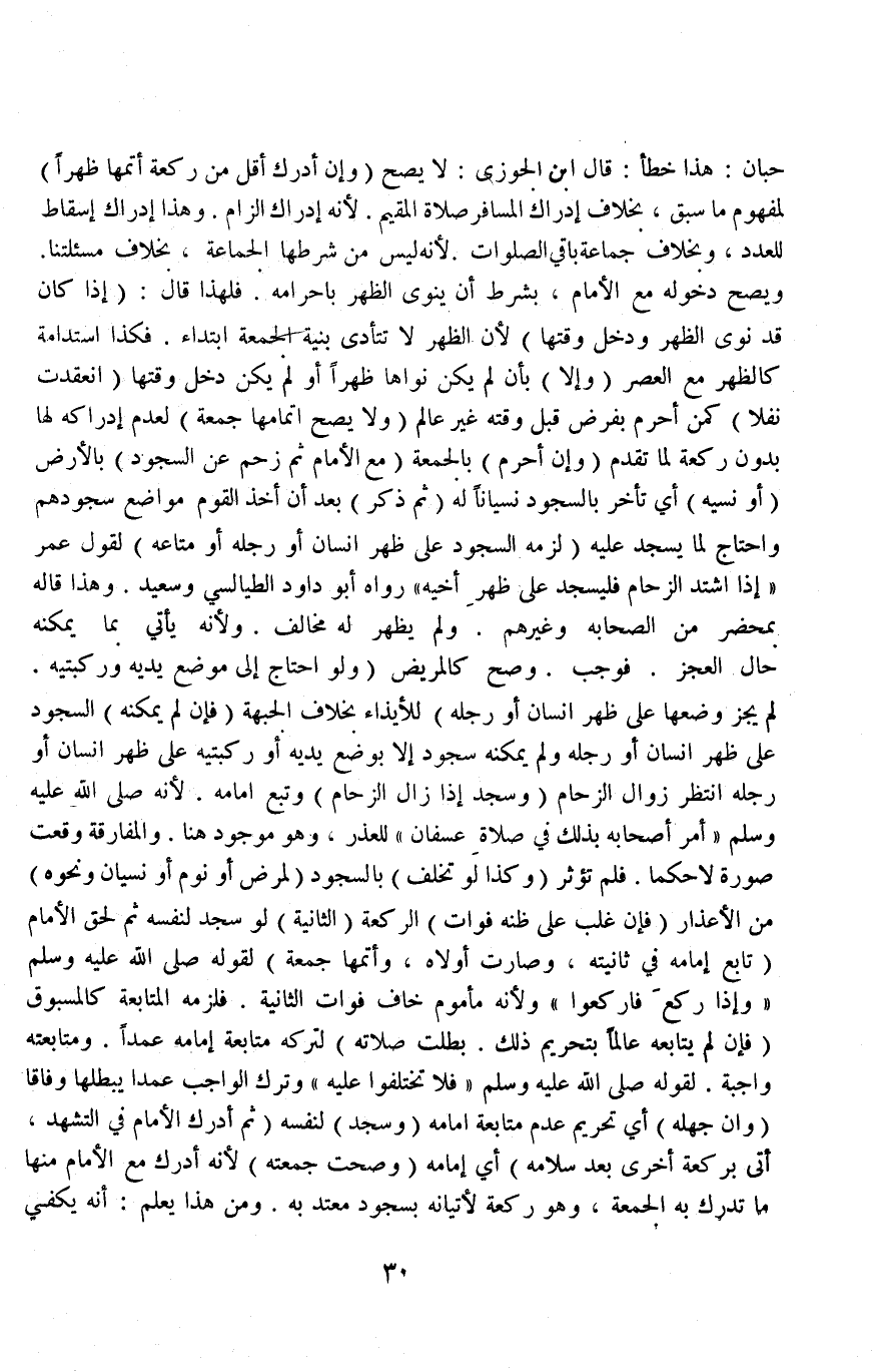 (وَإِنْ أَحْرَمَ) بِالْجُمُعَةِ (مَعَ الْإِمَامِ ثُمَّ زُحِمَ عَنْ السُّجُودِ) بِالْأَرْضِ (أَوْ نَسِيَهُ) أَيْ تَأَخَّرَ بِالسُّجُودِ نِسْيَانًا لَهُ (ثُمَّ ذَكَرَ) بَعْدَ أَنْ أَخَذَ الْقَوْمُ مَوَاضِعَ سُجُودِهِمْ وَاحْتَاجَ لِمَا يَسْجُدُ عَلَيْهِ (لَزِمَهُ السُّجُودُ عَلَى ظَهْرِ إنْسَانٍ أَوْ رِجْلِهِ أَوْ مَتَاعِهِ) لِقَوْلِ عُمَرَ " إذَا اشْتَدَّ الزِّحَامُ فَلْيَسْجُدْ عَلَى ظُهْر أَخِيهِ رَوَاهُ أَبُو دَاوُد الطَّيَالِسِيُّ وَسَعِيدٌ وَهَذَا قَالَهُ بِمَحْضَرٍ مِنْ الصَّحَابَةِ وَغَيْرِهِمْ وَلَمْ يَظْهَرْ لَهُ مُخَالِفٌ وَلِأَنَّهُ يَأْتِي بِمَا يُمْكِنُهُ حَالَ الْعَجْزِ فَوَجَبَ وَصَحَّ كَالْمَرِيضِ.