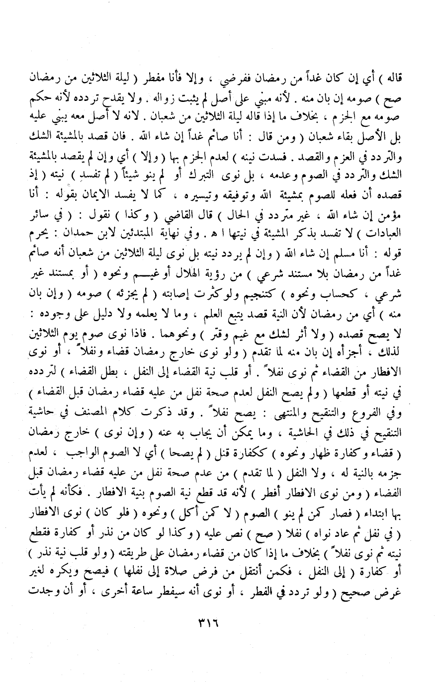(وَمَنْ قَالَ: أَنَا صَائِمٌ غَدًا إنْ شَاءَ اللَّهُ فَإِنْ قَصَدَ بِالْمَشِيئَةِ الشَّكَّ وَالتَّرَدُّدَ فِي الْعَزْمِ وَالْقَصْدِ، فَسَدَتْ نِيَّتُهُ) لِعَدَمِ الْجَزْمِ بِهَا.
