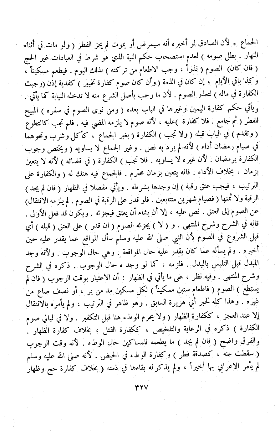 (وَالْكَفَّارَةُ عَلَى التَّرْتِيبِ فَيَجِبُ عِتْقُ رَقَبَةٍ) إنْ وَجَدَهَا بِشَرْطِهِ وَيَأْتِي مُفَصَّلًا فِي الظِّهَارِ، (فَإِنْ لَمْ يَجِدْ) الرَّقَبَةَ وَلَا ثَمَنَهَا (فَصِيَامُ شَهْرَيْنِ مُتَتَابِعَيْنِ فَلَوْ قَدَرَ عَلَى الرَّقَبَةِ فِي الصَّوْمِ لَمْ يَلْزَمْهُ الِانْتِقَالُ) عَنْ الصَّوْمِ إلَى الْعِتْقِ، نَصَّ عَلَيْهِ إلَّا أَنْ يَشَاءَ أَنْ يُعْتِقَ فَيُجْزِئُهُ وَيَكُونُ قَدْ فَعَلَ الْأَوْلَى قَالَهُ فِي الشَّرْحِ وَشَرْحِ الْمُنْتَهَى، وَ (لَا) يُجْزِئُهُ الصَّوْمُ (إنْ قَدَرَ) عَلَى الْعِتْقِ (قَبْلَهُ) أَيْ: قَبْلَ الشُّرُوعِ فِي الصَّوْمِ؛ لِأَنَّ النَّبِيَّ - صَلَّى اللَّهُ عَلَيْهِ وَسَلَّمَ - سَأَلَ الْمُوَاقِعَ عَمَّا يَقْدِرُ عَلَيْهِ حِينَ أَخْبَرَهُ وَلَمْ يَسْأَلهُ عَمَّا كَانَ يَقْدِرُ عَلَيْهِ حَالَ الْمُوَاقَعَةِ وَهِيَ حَالُ الْوُجُوبِ؛ وَلِأَنَّهُ وَجَدَ الْمُبْدَلَ قَبْلَ التَّلَبُّسِ بِالْبَدَلِ فَلَزِمَهُ كَمَا لَوْ وَجَدَهُ حَالَ الْوُجُوبِ ذَكَرَهُ فِي الشَّرْحِ وَشَرْحِ الْمُنْتَهَى وَفِيهِ نَظَرٌ لِمَا يَأْتِي فِي الظِّهَارِ: أَنَّ الِاعْتِبَارَ بِوَقْتِ الْوُجُوبِ (فَإِنْ لَمْ يَسْتَطِعْ) الصَّوْمَ (فَإِطْعَامُ سِتِّينَ مِسْكِينًا) ، لِكُلِّ مِسْكِينٍ مُدٌّ مِنْ بُرِّ أَوْ نِصْفُ صَاعٍ مِنْ غَيْرِهِ، وَهَذَا كُلُّهُ لِخَبَرِ أَبِي هُرَيْرَةَ السَّابِقِ.