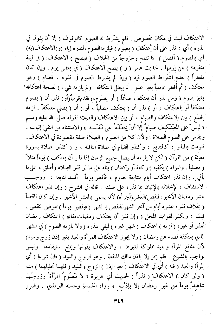 الِاعْتِكَافَ لُبْثٌ فِي مَكَان مَخْصُوصٍ فَلَمْ يُشْتَرَطْ لَهُ الصَّوْمُ كَالْوُقُوفِ (إلَّا أَنْ يَقُولَ فِي نَذْرِهِ) أَيْ: نَذْرٌ عَلَيَّ أَنْ أَعْتَكِفَ (بِصَوْمٍ) فَيَلْزَمُهُ الصَّوْمُ لِنَذْرِهِ إيَّاهُ.