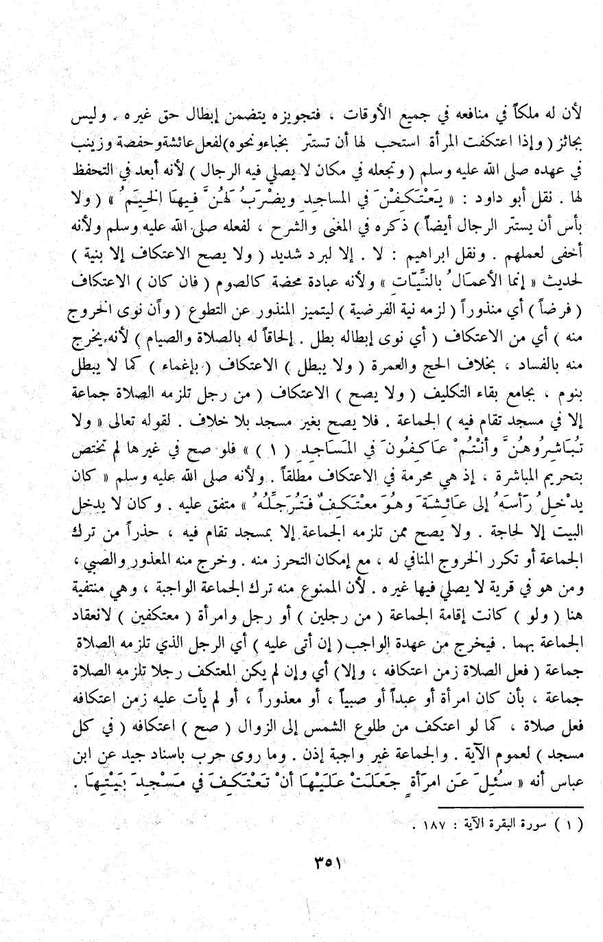 لِعُمُومِ الْآيَةِ وَالْجَمَاعَةُ غَيْرُ وَاجِبَةٍ إذَنْ وَمَا رَوَى حَرْبٌ بِإِسْنَادٍ جَيِّدٍ عَنْ ابْنِ عَبَّاسٍ أَنَّهُ سُئِلَ عَنْ امْرَأَةٍ جَعَلَتْ عَلَيْهَا أَنْ تَعْتَكِفَ فِي مَسْجِدِ بَيْتِهَا