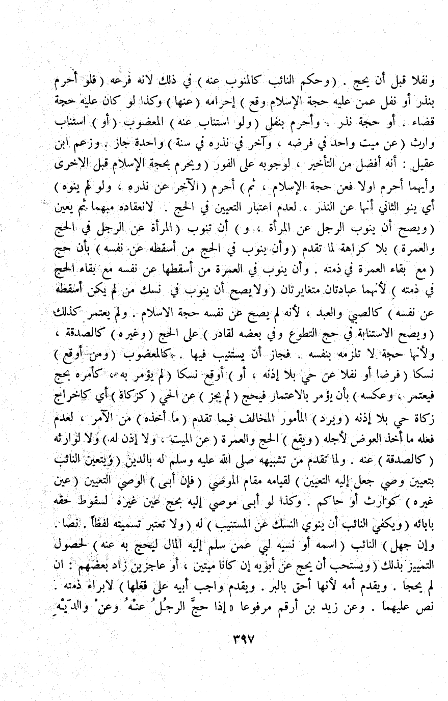 (وَلَا يَصِحُّ أَنْ يَنُوبَ فِي نُسُكٍ مَنْ لَمْ يَكُنْ أَسْقَطَهُ عَنْ نَفْسِهِ) كَالصَّبِيِّ وَالْعَبْدِ؛ لِأَنَّهُ لَمْ يَحُجَّ عَنْ نَفْسِهِ حَجَّةَ الْإِسْلَامِ، وَلَمْ يَعْتَمِرْ كَذَلِكَ.