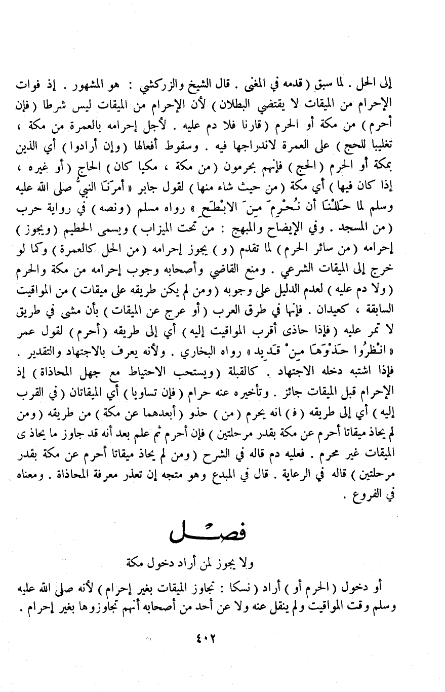 فَصْل وَلَا يَجُوزُ لِمَنْ أَرَادَ دُخُولَ مَكَّةَ أَوْ دُخُولَ (الْحَرَمِ أَوْ) أَرَادَ (نُسُكًا: تَجَاوُزُ الْمِيقَاتِ بِغَيْرِ إحْرَامٍ) لِأَنَّهُ - صَلَّى اللَّهُ عَلَيْهِ وَسَلَّمَ - وَقَّتَ الْمَوَاقِيتَ وَلَمْ يُنْقَلْ عَنْهُ وَلَا عَنْ أَحَدٍ مِنْ أَصْحَابِهِ أَنَّهُمْ تَجَاوَزُوهَا بِغَيْرِ إحْرَامٍ