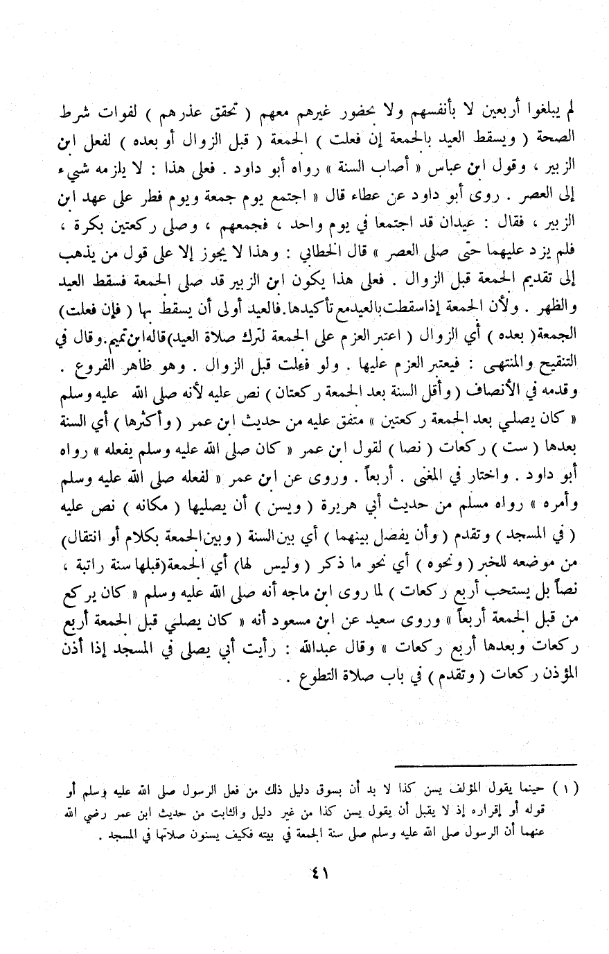 (وَأَقَلُّ السُّنَّةِ بَعْدَ الْجُمُعَةِ رَكْعَتَانِ) نَصَّ عَلَيْهِ لِأَنَّهُ - صَلَّى اللَّهُ عَلَيْهِ وَسَلَّمَ - «كَانَ يُصَلِّي بَعْدَ الْجُمُعَةِ رَكْعَتَيْنِ» مُتَّفَقٌ عَلَيْهِ مِنْ حَدِيثِ ابْنِ عُمَرَ.