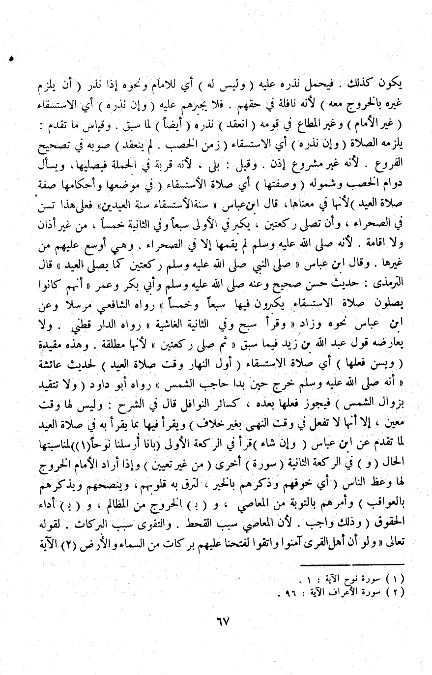 يَكُونُ كَذَلِكَ فَيُحْمَلُ نَذْرُهُ عَلَيْهِ (وَلَيْسَ لَهُ) أَيْ لِلْإِمَامِ وَنَحْوِهِ إذَا نَذَرَ (أَنْ يُلْزِمَ غَيْرَهُ بِالْخُرُوجِ مَعَهُ) لِأَنَّهُ نَافِلَةٌ فِي حَقِّهِمْ فَلَا يُجْبِرُهُمْ عَلَيْهِ (وَإِنْ نَذَرَهُ) أَيْ الِاسْتِسْقَاءَ (غَيْرُ الْإِمَامِ) وَغَيْرُ الْمُطَاعِ فِي قَوْمِهِ (انْعَقَدَ) نَذْرُهُ (أَيْضًا) لِمَا سَبَقَ وَقِيَاسُ مَا تَقَدَّمَ: يَلْزَمُهُ الصَّلَاةُ.
