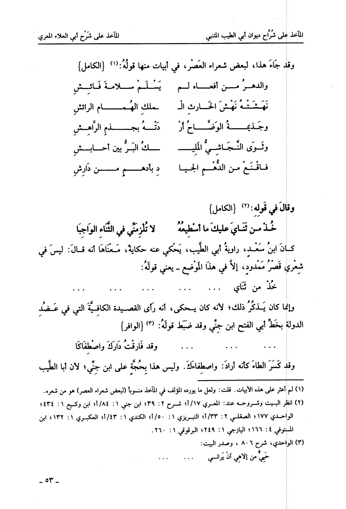 كتاب المآخذ على شراح ديوان أبي الطيب المتنبي (اسم الجزء: 2)