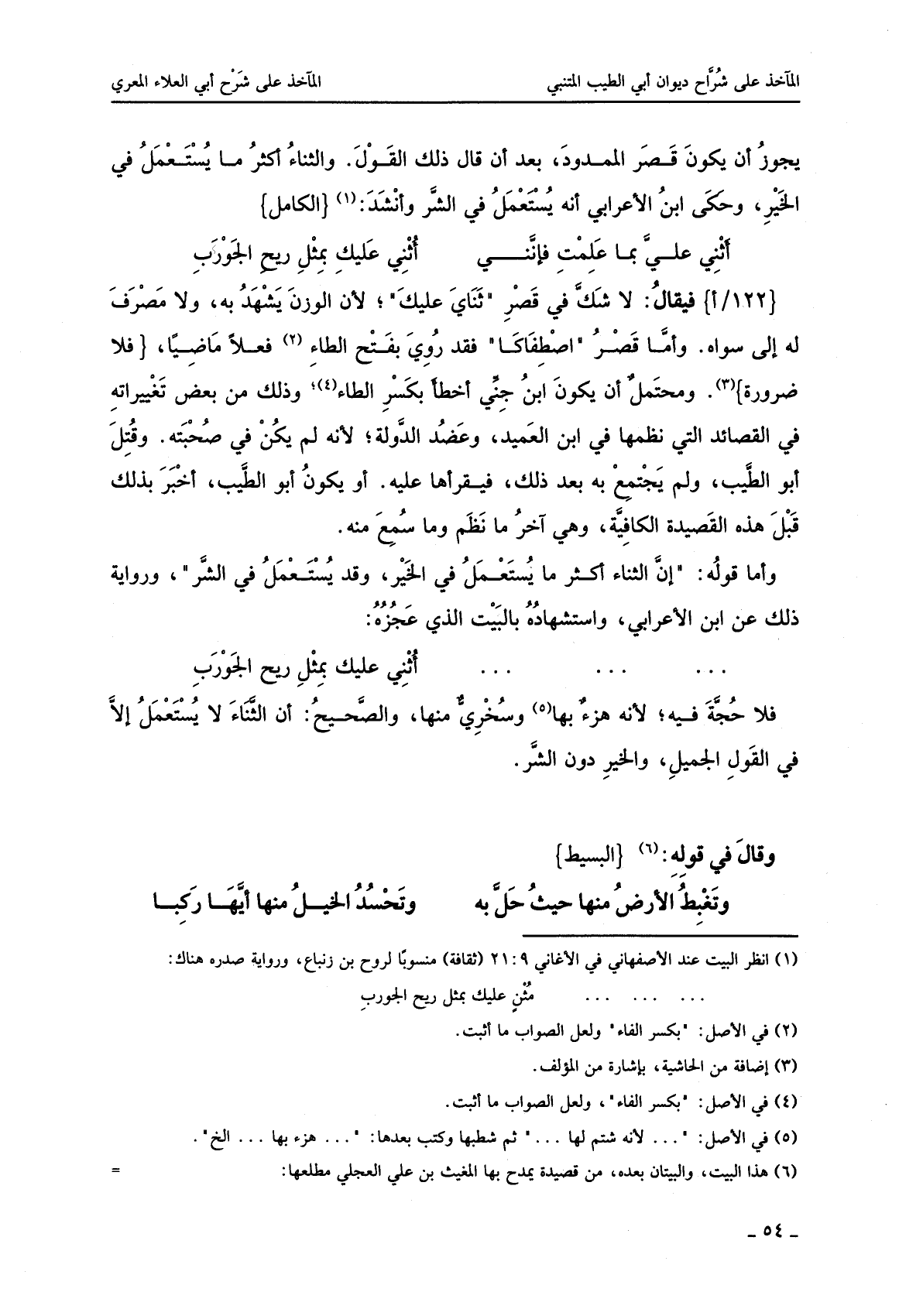 كتاب المآخذ على شراح ديوان أبي الطيب المتنبي (اسم الجزء: 2)