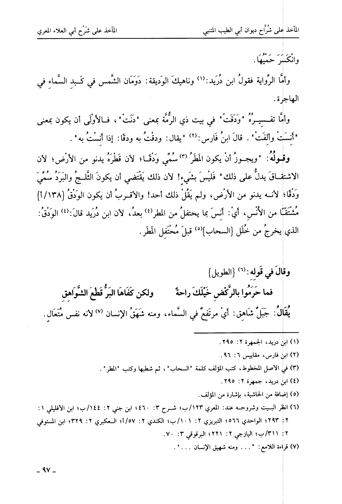 وأمّا الرواية فقول ابن دريد: وناهيك الوديقة: دومان الشّمس في كبد السّماء في الهاجرة.