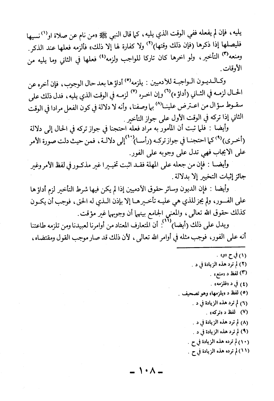 وَأَيْضًا: فَلَمَّا ثَبَتَ أَنَّ الْمَأْمُورَ بِهِ مُرَادٌ فِعْلُهُ احْتَجْنَا فِي جَوَازِ تَرْكِهِ فِي الْحَالِ إلَى دَلَالَةٍ (أُخْرَى) كَمَا احْتَجْنَا فِي جَوَازِ تَرْكِهِ (رَأْسًا) إلَى دَلَالَةٍ، فَمِنْ حَيْثُ دَلَّتْ صُورَةُ الْأَمْرِ عَلَى الْإِيجَابِ فَهِيَ تَدُلُّ عَلَى وُجُوبِهِ عَلَى الْفَوْرِ. وَأَيْضًا: فَإِنَّ مَنْ جَعَلَهُ عَلَى الْمُهْلَةِ فَقَدْ أَثْبَتَ تَخْيِيرًا غَيْرَ مَذْكُورٍ فِي لَفْظِ الْأَمْرِ وَغَيْرُ جَائِزٍ إثْبَاتُ التَّخْيِيرِ إلَّا بِدَلَالَةٍ.