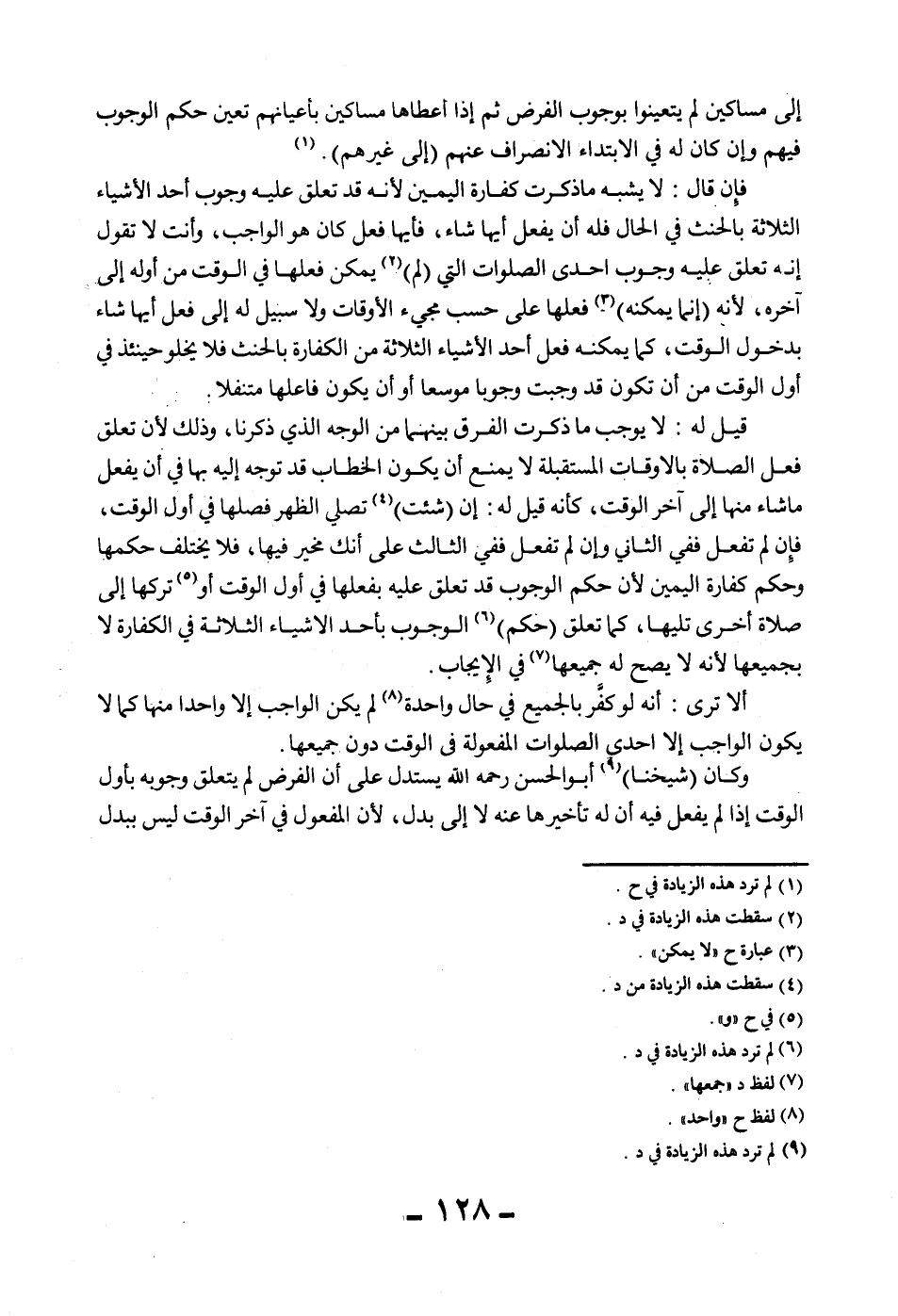إلَى مَسَاكِينَ لَمْ يَتَعَيَّنُوا بِوُجُوبِ الْفَرْضِ ثُمَّ إذَا أَعْطَاهَا مَسَاكِينَ بِأَعْيَانِهِمْ تَعَيَّنَ حُكْمُ الْوُجُوبِ فِيهِمْ وَإِنْ كَانَ لَهُ فِي الِابْتِدَاءِ الِانْصِرَافُ عَنْهُمْ (إلَى غَيْرِهِمْ) . فَإِنْ قَالَ: لَا يُشْبِهُ مَا ذَكَرْت كَفَّارَةَ الْيَمِينِ لِأَنَّهُ قَدْ تَعَلَّقَ عَلَيْهِ وُجُوبُ أَحَدِ الْأَشْيَاءِ الثَّلَاثَةِ بِالْحِنْثِ فِي الْحَالِ فَلَهُ أَنْ يَفْعَلَ أَيَّهَا شَاءَ، فَأَيَّهَا فَعَلَ كَانَ هُوَ الْوَاجِبَ، وَأَنْتَ لَا تَقُولُ إنَّهُ تَعَلَّقَ عَلَيْهِ وُجُوبُ إحْدَى الصَّلَوَاتِ الَّتِي (لَمْ) يُمْكِنْ فِعْلُهَا فِي الْوَقْتِ مِنْ أَوَّلِهِ إلَى آخِرِهِ، لِأَنَّهُ (إنَّمَا يُمْكِنُهُ) فِعْلُهَا عَلَى حَسَبِ مَجِيءِ الْأَوْقَاتِ وَلَا سَبِيلَ لَهُ إلَى فِعْلِ أَيُّهَا شَاءَ بِدُخُولِ الْوَقْتِ، كَمَا يُمْكِنُهُ فِعْلُ أَحَدِ الْأَشْيَاءِ الثَّلَاثَةِ مِنْ الْكَفَّارَةِ بِالْحِنْثِ فَلَا يَخْلُو حِينَئِذٍ فِي أَوَّلِ الْوَقْتِ مِنْ أَنْ تَكُونَ قَدْ وَجَبَتْ وُجُوبًا مُوَسَّعًا أَوْ أَنْ يَكُونَ فَاعِلُهَا مُتَنَفِّلًا. قِيلَ لَهُ: لَا يُوجِبُ مَا ذَكَرْت الْفَرْقَ بَيْنَهُمَا مِنْ الْوَجْهِ الَّذِي ذَكَرْنَا، وَذَلِكَ لِأَنَّ تَعَلُّقَ فِعْلِ الصَّلَاةِ بِالْأَوْقَاتِ الْمُسْتَقْبَلَةِ لَا يَمْنَعُ أَنْ يَكُونَ الْخِطَابُ قَدْ تَوَجَّهَ إلَيْهِ بِهَا فِي أَنْ يَفْعَلَ مَا شَاءَ مِنْهَا إلَى آخِرِ الْوَقْتِ، كَأَنَّهُ قِيلَ لَهُ: إنْ (شِئْت) تُصَلِّي الظُّهْرَ فَصَلِّهَا فِي أَوَّلِ الْوَقْتِ، فَإِنْ لَمْ تَفْعَلْ فَفِي الثَّانِي وَإِنْ لَمْ تَفْعَلْ فَفِي الثَّالِثِ عَلَى أَنَّك مُخَيَّرٌ فِيهَا، فَلَا يَخْتَلِفُ حُكْمُهَا وَحُكْمُ كَفَّارَةِ الْيَمِينِ لِأَنَّ حُكْمَ الْوُجُوبِ قَدْ تَعَلَّقَ عَلَيْهِ بِفِعْلِهَا فِي أَوَّلِ الْوَقْتِ أَوْ تَرْكِهَا إلَى صَلَاةٍ أُخْرَى تَلِيهَا، كَمَا تَعَلَّقَ (حُكْمُ) الْوُجُوبِ بِأَحَدِ الْأَشْيَاءِ الثَّلَاثَةِ فِي الْكَفَّارَةِ لَا بِجَمِيعِهَا لِأَنَّهُ لَا يَصِحُّ لَهُ جَمِيعُهَا فِي الْإِيجَابِ.