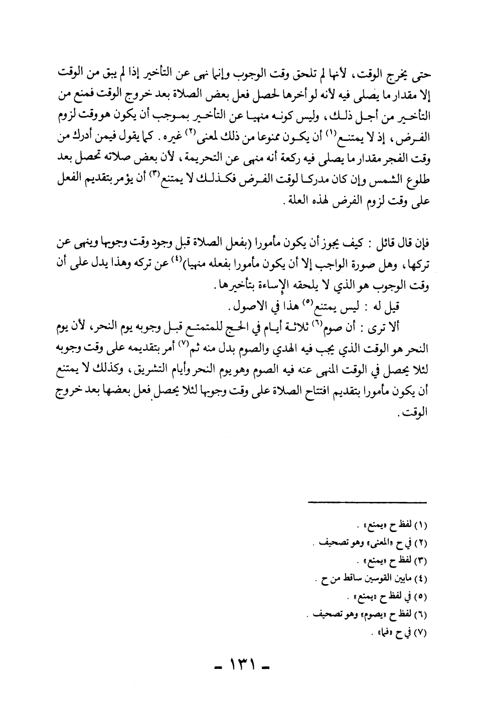 قِيلَ لَهُ: لَيْسَ يَمْتَنِعُ هَذَا فِي الْأُصُولِ. أَلَا تَرَى: أَنَّ صَوْمَ ثَلَاثَةِ أَيَّامٍ فِي الْحَجِّ لِلْمُتَمَتِّعِ قَبْلَ وُجُوبِهِ يَوْمَ النَّحْرِ، لِأَنَّ يَوْمَ النَّحْرِ هُوَ الْوَقْتُ الَّذِي يَجِبُ فِيهِ الْهَدْيُ وَالصَّوْمُ بَدَلٌ مِنْهُ ثُمَّ أَمَرَ بِتَقْدِيمِهِ عَلَى وَقْتِ وُجُوبِهِ لِئَلَّا يَحْصُلَ فِي الْوَقْتِ الْمَنْهِيِّ عَنْهُ فِيهِ الصَّوْمُ وَهُوَ يَوْمُ النَّحْرِ وَأَيَّامُ التَّشْرِيقِ، وَكَذَلِكَ لَا يَمْتَنِعُ أَنْ يَكُونَ مَأْمُورًا بِتَقْدِيمِ افْتِتَاحِ الصَّلَاةِ عَلَى وَقْتِ وُجُوبِهَا لِئَلَّا يَحْصُلَ فِعْلُ بَعْضِهَا بَعْدَ خُرُوجِ الْوَقْتِ.