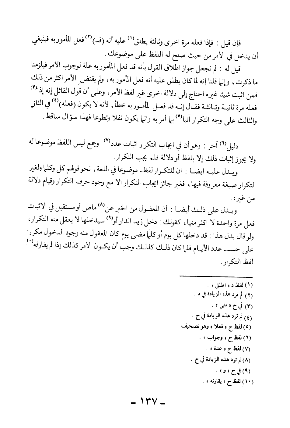 فَإِنْ قِيلَ: فَإِذَا فَعَلَهُ مَرَّةً أُخْرَى وَثَالِثَةً يُطْلَقُ عَلَيْهِ أَنَّهُ (قَدْ) فَعَلَ الْمَأْمُورَ بِهِ فَيَنْبَغِي أَنْ يَدْخُلَ فِي الْأَمْرِ مِنْ حَيْثُ صَلَحَ لَهُ اللَّفْظُ عَلَى مَوْضُوعِك. قِيلَ لَهُ: لَمْ نَجْعَلْ جَوَازَ إطْلَاقِ الْقَوْلِ بِأَنَّهُ قَدْ فَعَلَ الْمَأْمُورَ بِهِ عِلَّةً لِوُجُوبِ الْأَمْرِ فَيَلْزَمُنَا مَا ذَكَرْت، وَإِنَّمَا قُلْنَا إنَّهُ لَمَّا كَانَ يُطْلَقُ عَلَيْهِ أَنَّهُ فَعَلَ الْمَأْمُورَ بِهِ، وَلَمْ يَقْتَضِ الْأَمْرُ أَكْثَرَ مِنْ ذَلِكَ فَمَنْ أَثْبَتَ شَيْئًا غَيْرَهُ احْتَاجَ إلَى دَلَالَةٍ أُخْرَى غَيْرِ لَفْظِ الْأَمْرِ، وَعَلَى أَنَّ قَوْلَ الْقَائِلِ أَنَّهُ إذَا فَعَلَهُ مَرَّةً ثَانِيَةً وَثَالِثَةً فَقَالَ إنَّهُ قَدْ فَعَلَ الْمَأْمُورَ بِهِ خَطَأً، لِأَنَّهُ لَا يَكُونُ (فِعْلُهُ) فِي الثَّانِي وَالثَّالِثِ عَلَى وَجْهِ التَّكْرَارِ آتِيًا بِمَا أُمِرَ بِهِ وَإِنَّمَا يَكُونُ نَفْلًا وَتَطَوُّعًا فَهَذَا سُؤَالٌ سَاقِطٌ. دَلِيلٌ آخَرُ: وَهُوَ أَنَّ فِي إيجَابِ التَّكْرَارِ إثْبَاتَ عَدَدٍ وَجَمْعٍ لَيْسَ اللَّفْظُ مَوْضُوعًا لَهُ وَلَا يَجُوزُ إثْبَاتُ ذَلِكَ إلَّا بِلَفْظٍ أَوْ دَلَالَةٍ فَلَمْ يَجِبْ التَّكْرَارُ.