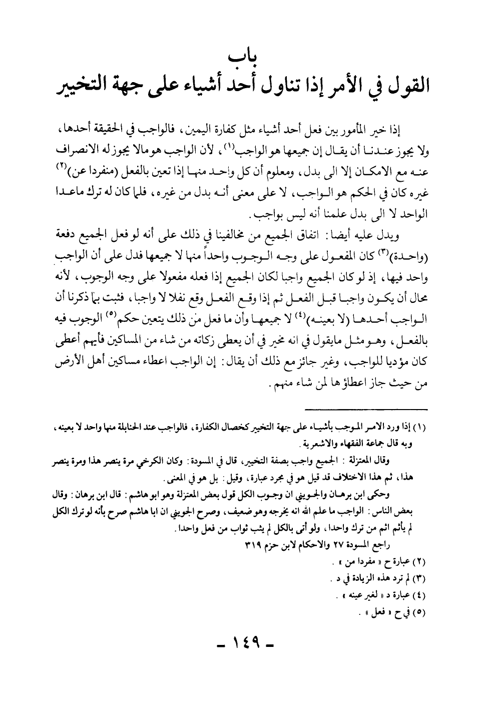 [بَابُ الْقَوْلِ فِي الْأَمْرِ إذَا تَنَاوَلَ أَحَدَ أَشْيَاءَ عَلَى جِهَةِ التَّخْيِيرِ]