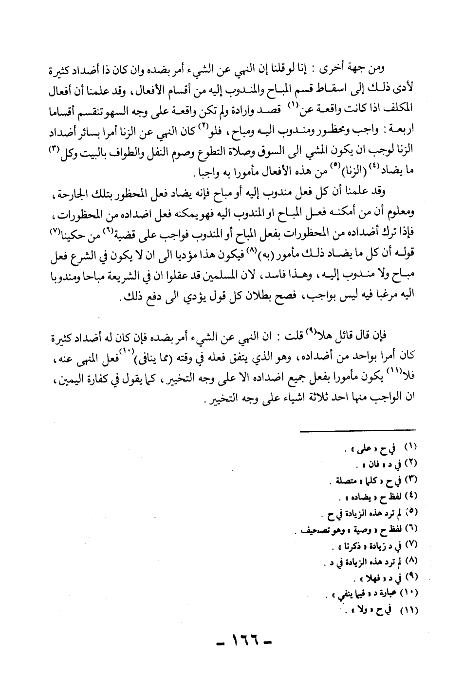 وَمِنْ جِهَةٍ أُخْرَى: أَنَّا لَوْ قُلْنَا إنَّ النَّهْيَ عَنْ الشَّيْءِ أَمْرٌ بِضِدِّهِ وَإِنْ كَانَ ذَا أَضْدَادٍ كَثِيرَةٍ لَأَدَّى ذَلِكَ إلَى إسْقَاطِ قِسْمِ الْمُبَاحِ وَالْمَنْدُوبِ إلَيْهِ مِنْ أَقْسَامِ الْأَفْعَالِ، وَقَدْ عَلِمْنَا أَنَّ أَفْعَالَ الْمُكَلَّفِ إذَا كَانَتْ وَاقِعَةً عَنْ قَصْدٍ وَإِرَادَةٍ وَلَمْ تَكُنْ وَاقِعَةً عَلَى وَجْهِ السَّهْوِ تَنْقَسِمُ أَقْسَامًا أَرْبَعَةً: وَاجِبٌ وَمَحْظُورٌ وَمَنْدُوبٌ إلَيْهِ وَمُبَاحٌ، فَلَوْ كَانَ النَّهْيُ عَنْ الزِّنَا أَمْرًا بِسَائِرِ أَضْدَادِ الزِّنَا لَوَجَبَ أَنْ يَكُونَ الْمَشْيُ إلَى السُّوقِ وَصَلَاةُ التَّطَوُّعِ وَصَوْمُ النَّفْلِ وَالطَّوَافُ بِالْبَيْتِ وَكُلُّ مَا يُضَادُّ (الزِّنَا) مِنْ هَذِهِ الْأَفْعَالِ مَأْمُورًا بِهِ وَاجِبًا.