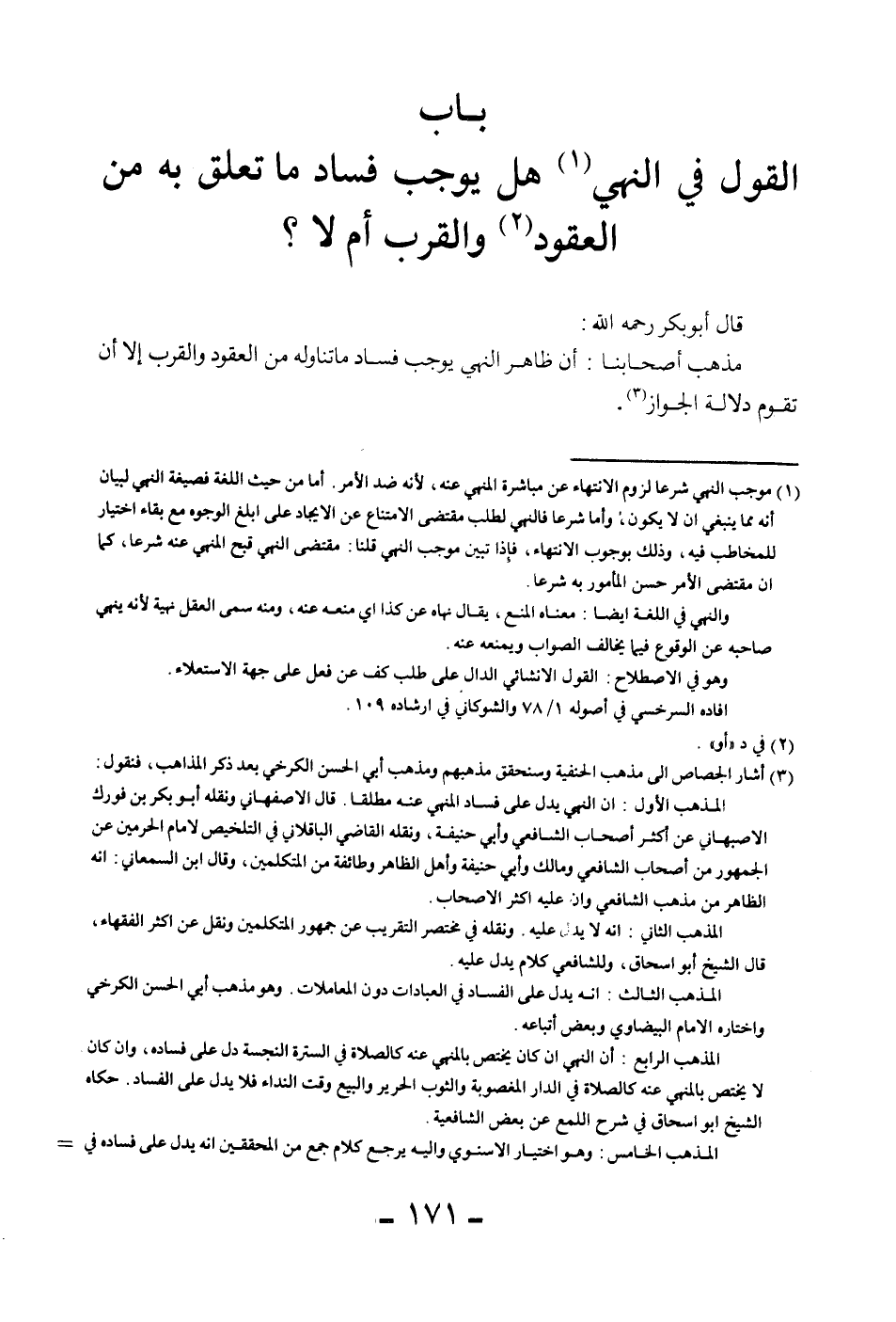 [بَابُ الْقَوْلِ فِي النَّهْيِ هَلْ يُوجِبُ فَسَادَ مَا تَعَلَّقَ بِهِ مِنْ الْعُقُودِ وَالْقُرَبِ أَمْ لَا]