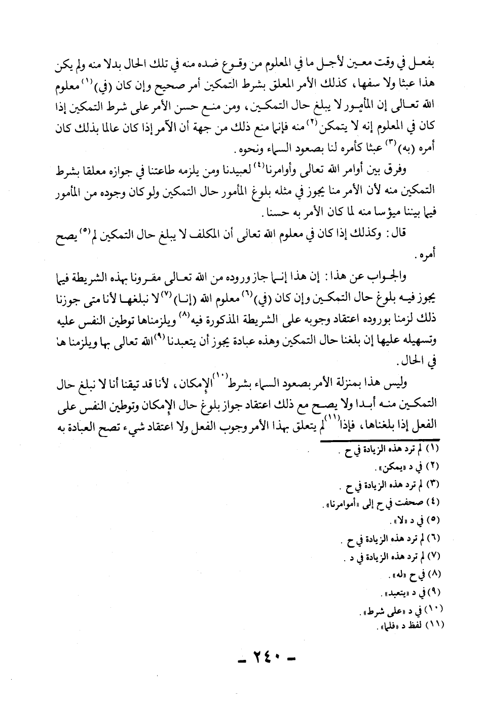 بِفِعْلٍ فِي وَقْتٍ مُعَيَّنٍ لِأَجَلٍ مَا فِي الْمَعْلُومِ مِنْ وُقُوعِ ضِدِّهِ مِنْهُ فِي تِلْكَ الْحَالِ بَدَلًا مِنْهُ وَلَمْ يَكُنْ هَذَا عَبَثًا وَلَا سَفَهًا، كَذَلِكَ الْأَمْرُ الْمُعَلَّقُ بِشَرْطِ التَّمْكِينِ أَمْرٌ صَحِيحٌ وَإِنْ كَانَ (فِي) مَعْلُومِ اللَّهِ تَعَالَى أَنَّ الْمَأْمُورَ لَا يَبْلُغُ حَالَ التَّمْكِينِ، وَمَنْ مَنَعَ حُسْنَ الْأَمْرِ عَلَى شَرْطِ التَّمْكِينِ إذَا كَانَ فِي الْمَعْلُومِ أَنَّهُ لَا يَتَمَكَّنُ مِنْهُ فَإِنَّمَا مَنَعَ ذَلِكَ مِنْ جِهَةِ أَنَّ الْآمِرَ إذَا كَانَ عَالِمًا بِذَلِكَ كَانَ أَمْرُهُ (بِهِ) عَبَثًا كَأَمْرِهِ لَنَا بِصُعُودِ السَّمَاءِ وَنَحْوِهِ.