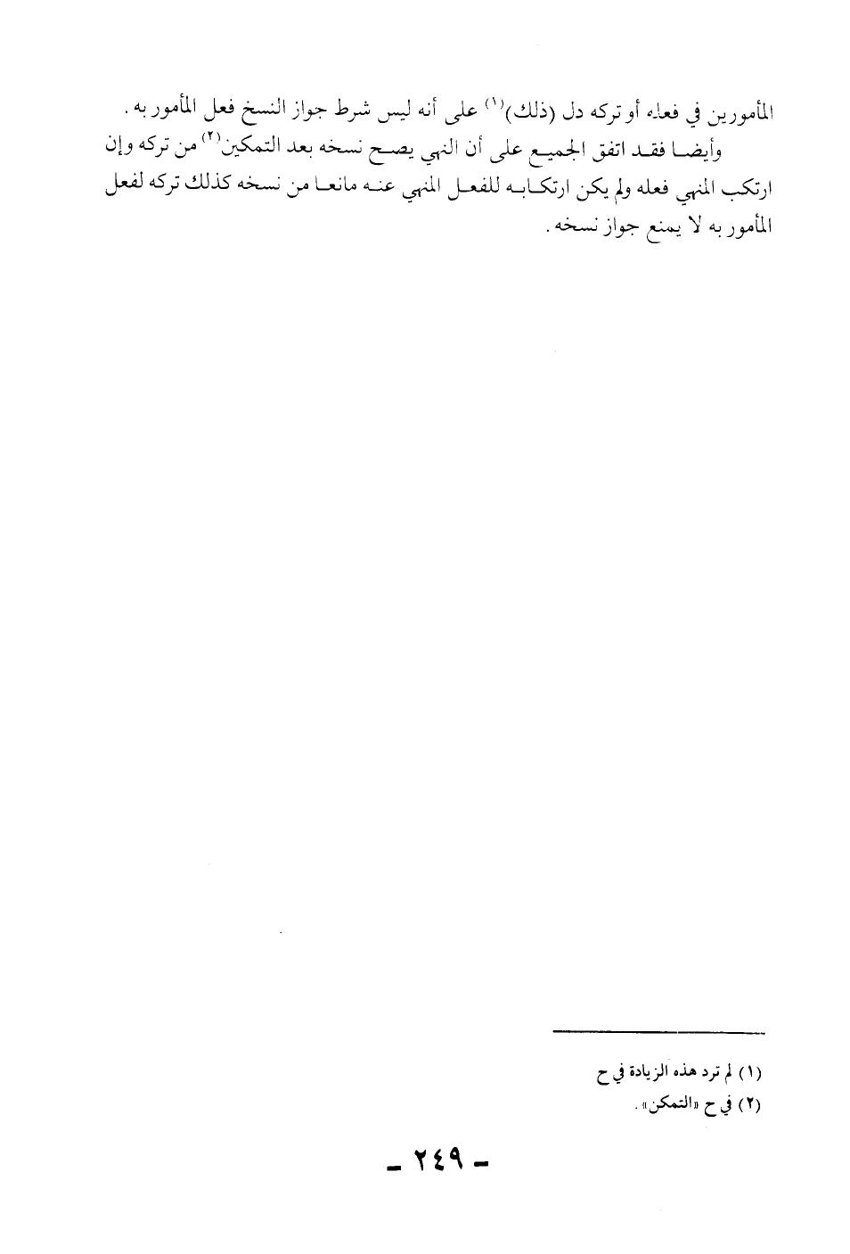 الْمَأْمُورِينَ فِي فِعْلِهِ أَوْ تَرْكِهِ دَلَّ (ذَلِكَ) عَلَى أَنَّهُ لَيْسَ شَرْطُ جَوَازِ النَّسْخِ فِعْلَ الْمَأْمُورِ بِهِ.