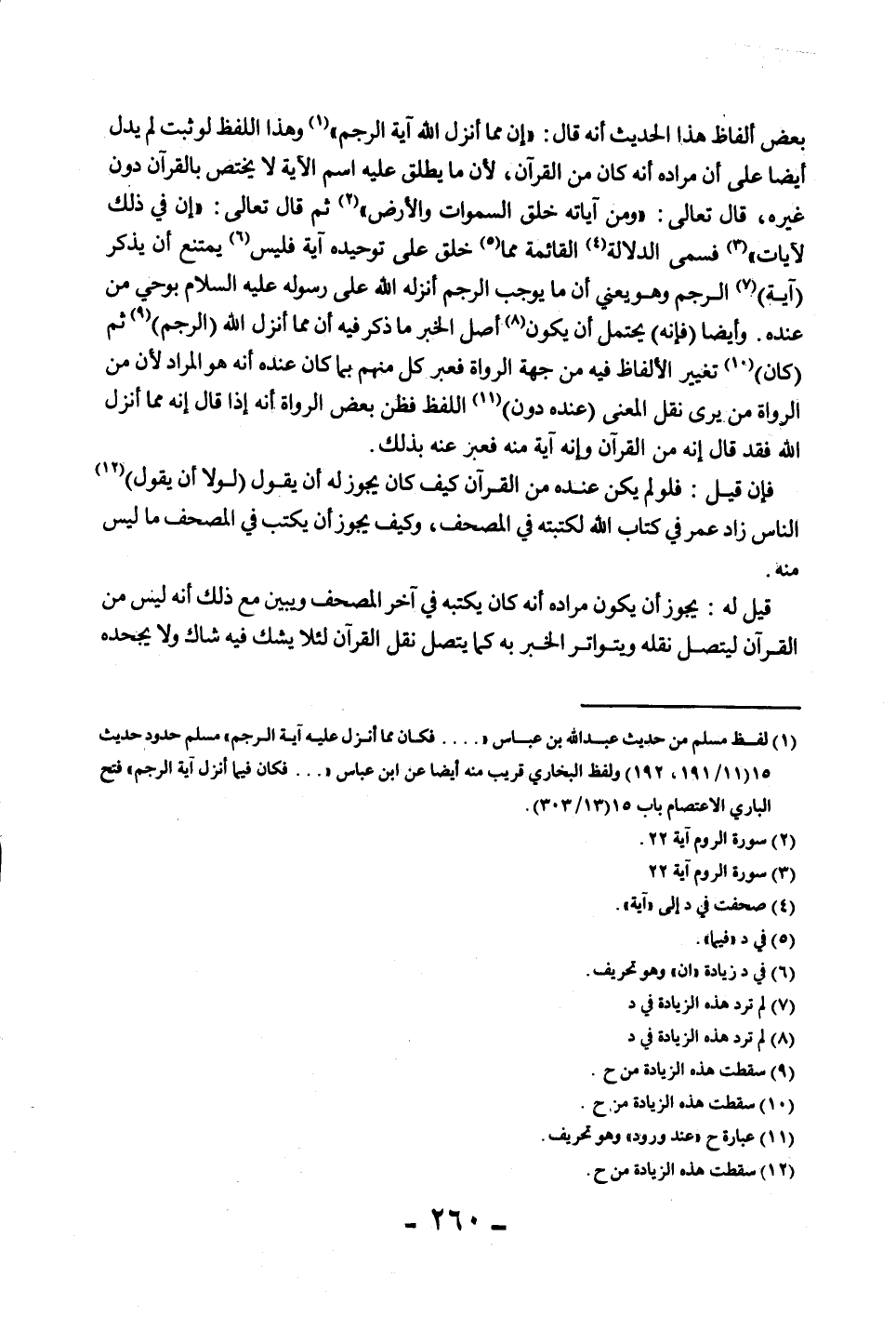 بَعْضِ أَلْفَاظِ هَذَا الْحَدِيثِ أَنَّهُ قَالَ: " إنْ مِمَّا أَنْزَلَ اللَّهُ آيَةَ الرَّجْمِ " وَهَذَا اللَّفْظُ لَوْ ثَبَتَ لَمْ يَدُلَّ أَيْضًا عَلَى أَنَّ مُرَادَهُ أَنَّهُ كَانَ مِنْ الْقُرْآنِ، لِأَنَّ مَا يُطْلَقُ عَلَيْهِ اسْمُ الْآيَةِ لَا يَخْتَصُّ بِالْقُرْآنِ دُونَ غَيْرِهِ، قَالَ تَعَالَى: {وَمِنْ آيَاتِهِ خَلْقُ السَّمَاوَاتِ وَالأَرْضِ} [الروم: 22] ثُمَّ قَالَ تَعَالَى: {إنَّ فِي ذَلِكَ لَآيَاتٍ} [الروم: 22] فَسَمَّى الدَّلَالَةَ الْقَائِمَةَ مِمَّا خَلَقَ عَلَى تَوْحِيدِهِ آيَةً فَلَيْسَ يَمْتَنِعُ أَنْ يَذْكُرَ (آيَةَ) الرَّجْمِ وَهُوَ يَعْنِي أَنَّ مَا يُوجِبُ الرَّجْمَ أَنْزَلَهُ اللَّهُ عَلَى رَسُولِهِ - عَلَيْهِ السَّلَامُ - بِوَحْيٍ مِنْ عِنْدِهِ.