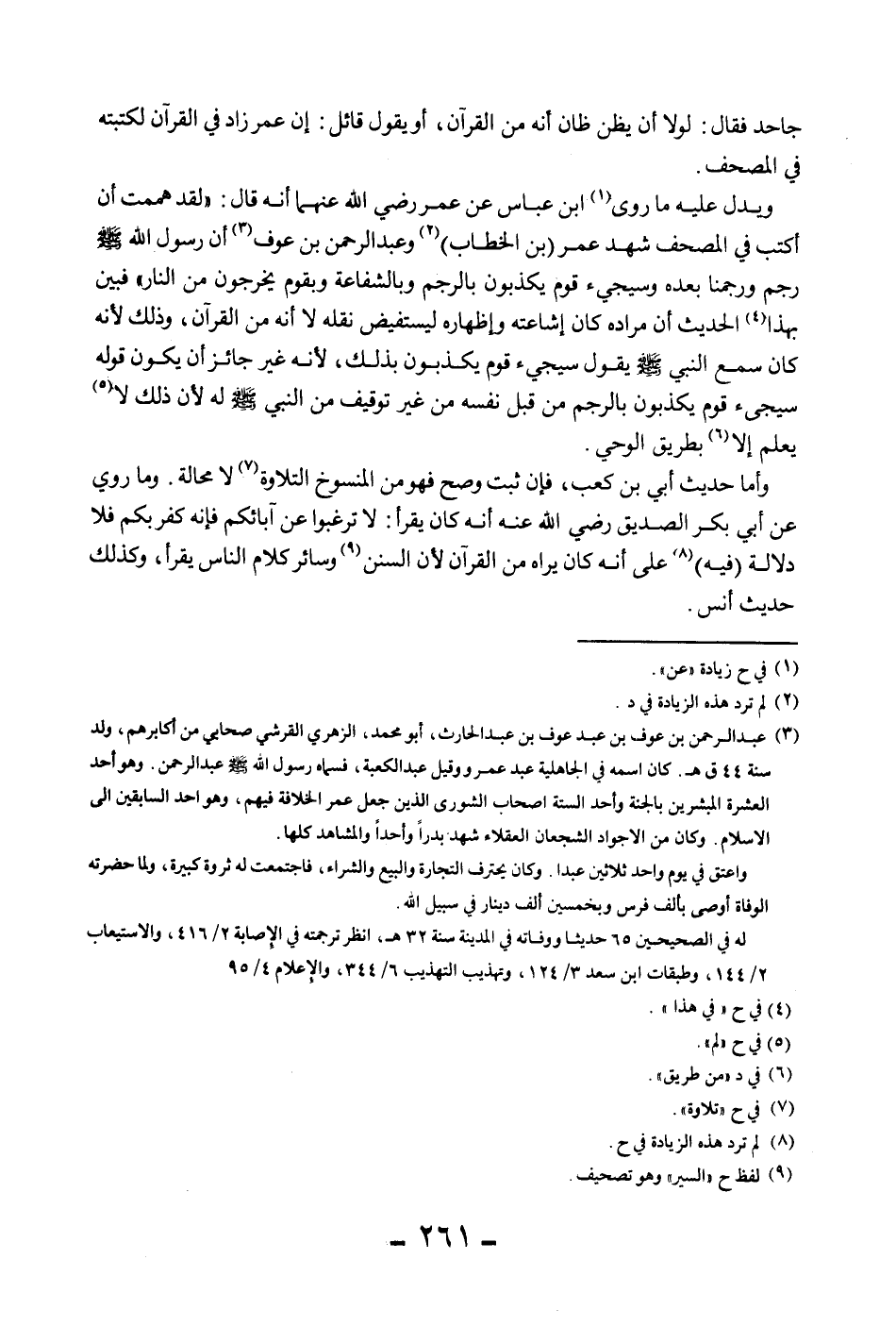 جَاحِدٌ فَقَالَ: لَوْلَا أَنْ يَظُنَّ ظَانٌّ أَنَّهُ مِنْ الْقُرْآنِ، أَوْ يَقُولَ قَائِلٌ: إنَّ عُمَرَ زَادَ فِي الْقُرْآنِ لَكَتَبْته فِي الْمُصْحَفِ.
