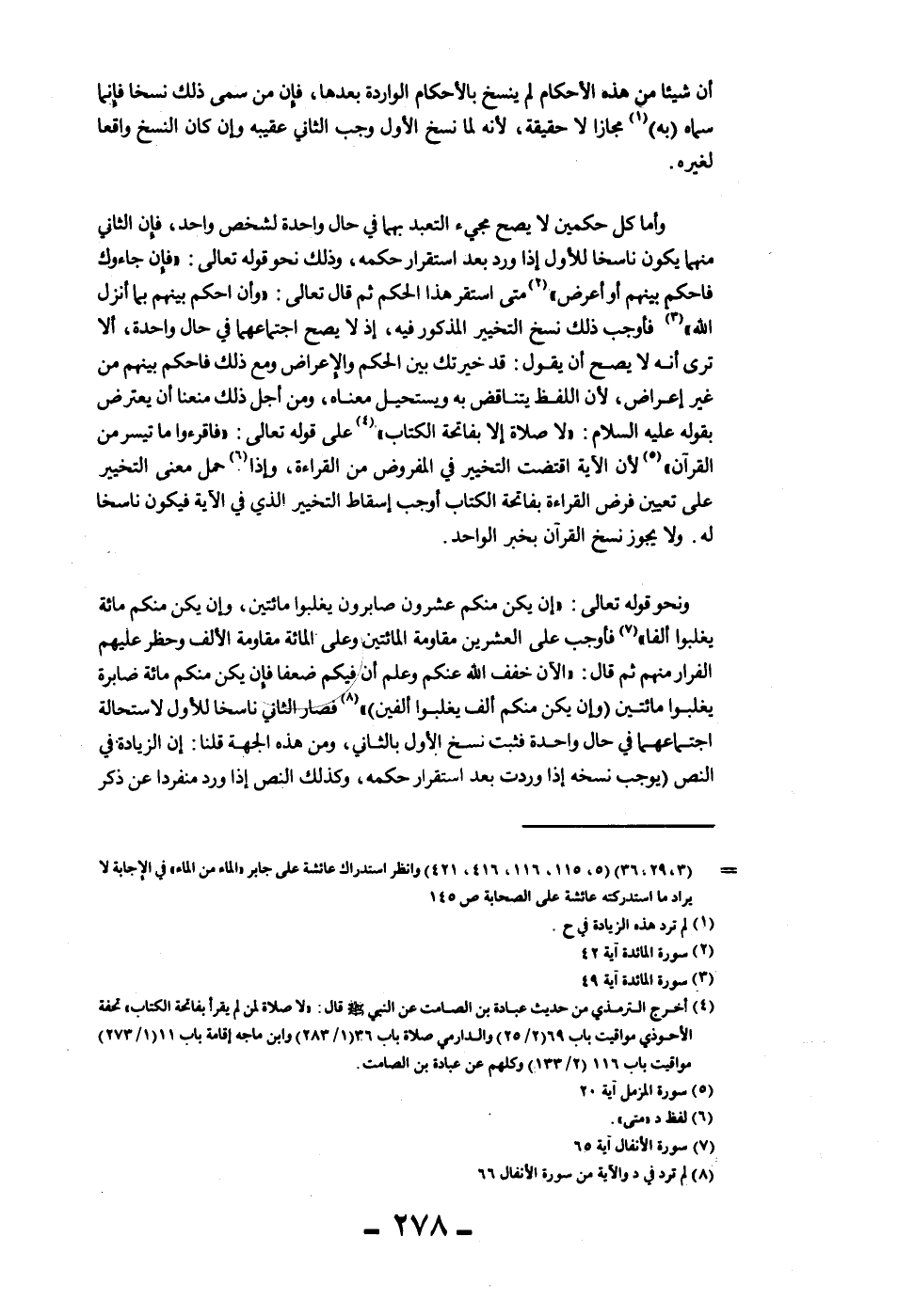 أَنَّ شَيْئًا مِنْ هَذِهِ الْأَحْكَامِ لَمْ يُنْسَخْ بِالْأَحْكَامِ الْوَارِدَةِ بَعْدَهَا، فَإِنَّ مَنْ سَمَّى ذَلِكَ نَسْخًا فَإِنَّمَا سَمَّاهُ (بِهِ) مَجَازًا لَا حَقِيقَةً، لِأَنَّهُ لَمَّا نُسِخَ الْأَوَّلُ وَجَبَ الثَّانِي عَقِيبَهُ وَإِنْ كَانَ النَّسْخُ وَاقِعًا لِغَيْرِهِ.