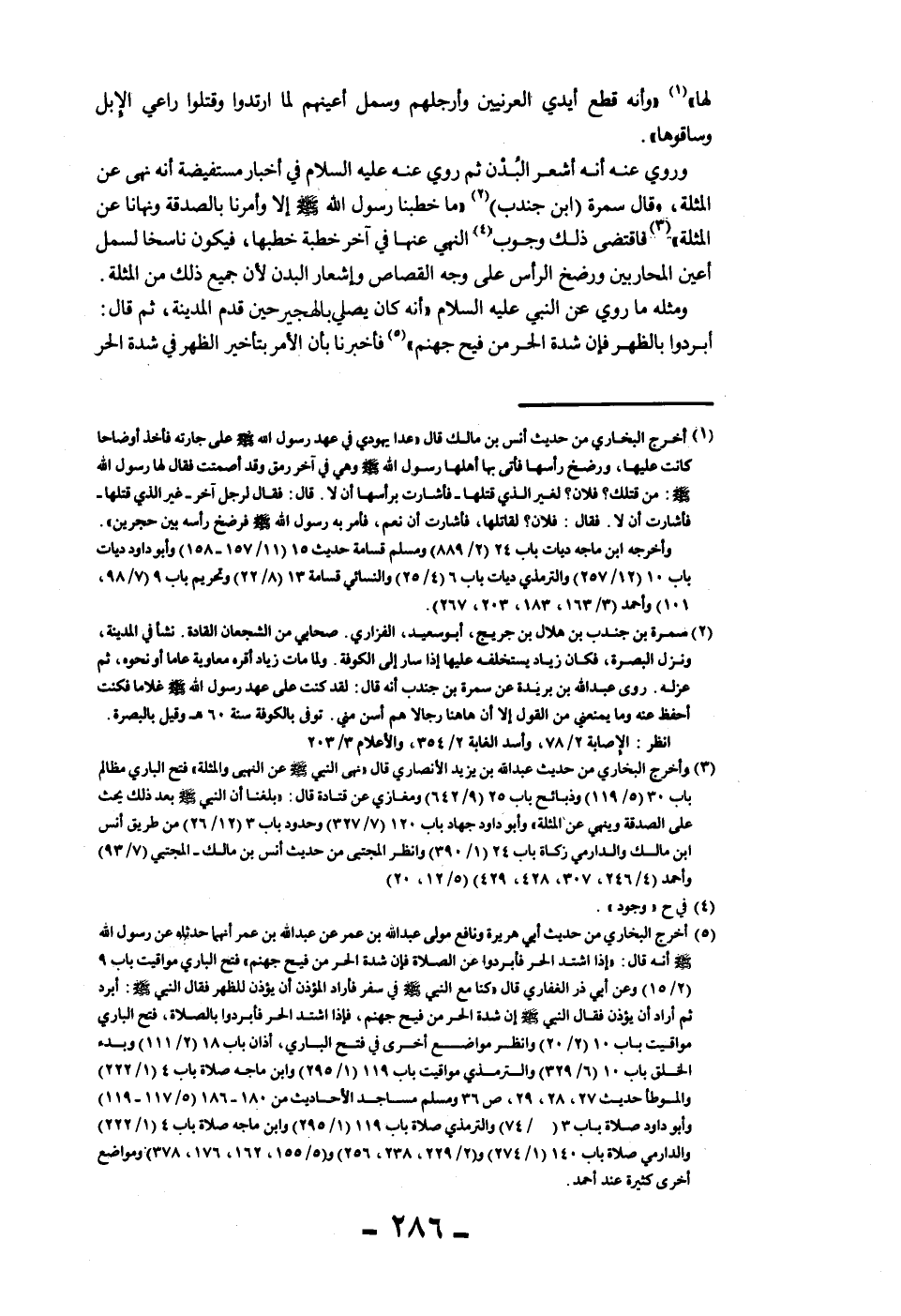 لَهَا» «وَأَنَّهُ قَطَعَ أَيْدِيَ الْعُرَنِيِّينَ وَأَرْجُلَهُمْ وَسَمَلَ أَعْيُنَهُمْ لَمَّا ارْتَدُّوا وَقَتَلُوا رَاعِيَ الْإِبِلِ وَسَاقُوهَا» .