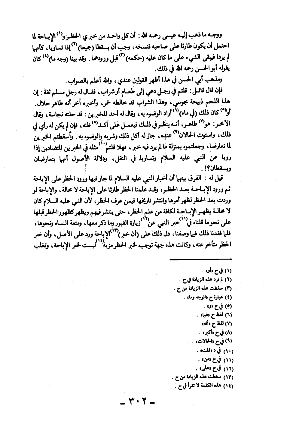 وَوَجْهُ مَا ذَهَبَ إلَيْهِ عِيسَى - رَحِمَهُ اللَّهُ -: أَنَّ كُلَّ وَاحِدٍ مِنْ خَبَرَيْ الْحَظْرِ وَالْإِبَاحَةِ لَمَّا اُحْتُمِلَ أَنْ يَكُونَ طَارِئًا عَلَى صَاحِبِهِ فَنَسَخَهُ، وَجَبَ أَنْ يَسْقُطَا (جَمِيعًا) إذَا تَسَاوَيَا، كَأَنَّهُمَا لَمْ يَرِدَا فَيَبْقَى الشَّيْءُ عَلَى مَا كَانَ عَلَيْهِ (حُكْمُهُ) قَبْلَ وُرُودِهِمَا. وَقَدْ بَيَّنَّا (وَجْهَ مَا) كَانَ يَقُولُهُ أَبُو الْحَسَنِ - رَحِمَهُ اللَّهُ - فِي ذَلِكَ. وَمَذْهَبُ أَبِي الْحَسَنِ فِي هَذَا أَظْهَرُ الْقَوْلَيْنِ عِنْدِي، وَاَللَّهُ أَعْلَمُ بِالصَّوَابِ.