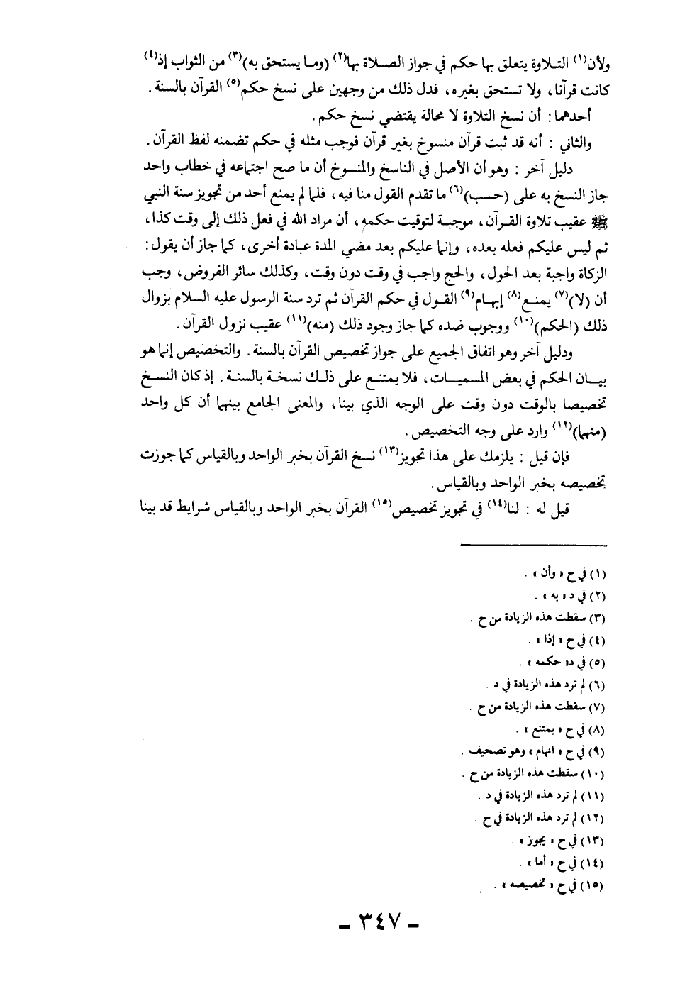 وَلِأَنَّ التِّلَاوَةَ يَتَعَلَّقُ بِهَا حُكْمٌ فِي جَوَازِ الصَّلَاةِ بِهَا (وَمَا يَسْتَحِقُّ بِهِ) مِنْ الثَّوَابِ إذْ كَانَتْ قُرْآنًا، وَلَا تَسْتَحِقُّ بِغَيْرِهِ، فَدَلَّ ذَلِكَ مِنْ وَجْهَيْنِ عَلَى نَسْخِ حُكْمِ الْقُرْآنِ بِالسُّنَّةِ.