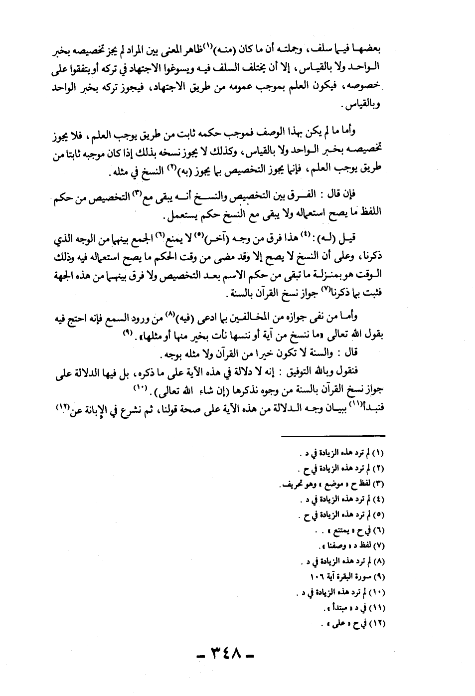 فَنَقُولُ وَبِاَللَّهِ التَّوْفِيقُ: إنَّهُ لَا دَلَالَةَ فِي هَذِهِ الْآيَةِ عَلَى مَا ذَكَرَهُ، بَلْ فِيهَا الدَّلَالَةُ عَلَى جَوَازِ نَسْخِ الْقُرْآنِ بِالسُّنَّةِ مِنْ وُجُوهٍ نَذْكُرُهَا (إنْ شَاءَ اللَّهُ تَعَالَى) .
