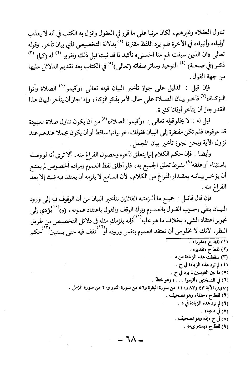 تَنَاوَلَ الْعُقَلَاءَ وَغَيْرَهُمْ، لَكَانَ مُرَتَّبًا عَلَى مَا قَرَّرَ فِي الْعُقُولِ وَأَنْزَلَ بِهِ الْكُتُبَ فِي أَنَّهُ لَا يُعَذِّبُ أَوْلِيَاءَهُ وَأَنْبِيَاءَهُ فِي الْآخِرَةِ فَلَمْ يَرِدْ اللَّفْظُ مُقْتَرِنًا بِدَلَالَةِ التَّخْصِيصِ فَأَيُّ بَيَانٍ تَأَخَّرَ. وقَوْله تَعَالَى {إنَّ الَّذِينَ سَبَقَتْ لَهُمْ مِنَّا الْحُسْنَى} [الأنبياء: 101] تَأْكِيدٌ لِمَا قَدْ ثَبَتَ قَبْلَ ذَلِكَ وَتَقْرِيرٌ لَهُ (كَمَا) ذُكِرَ (فِي صِحَّةِ) التَّوْحِيدِ وَسَائِرِ صِفَاتِهِ (تَعَالَى) فِي الْكِتَابِ بَعْدَ تَقْدِيمِ الدَّلَائِلِ عَلَيْهَا مِنْ جِهَةِ الْقَوْلِ.