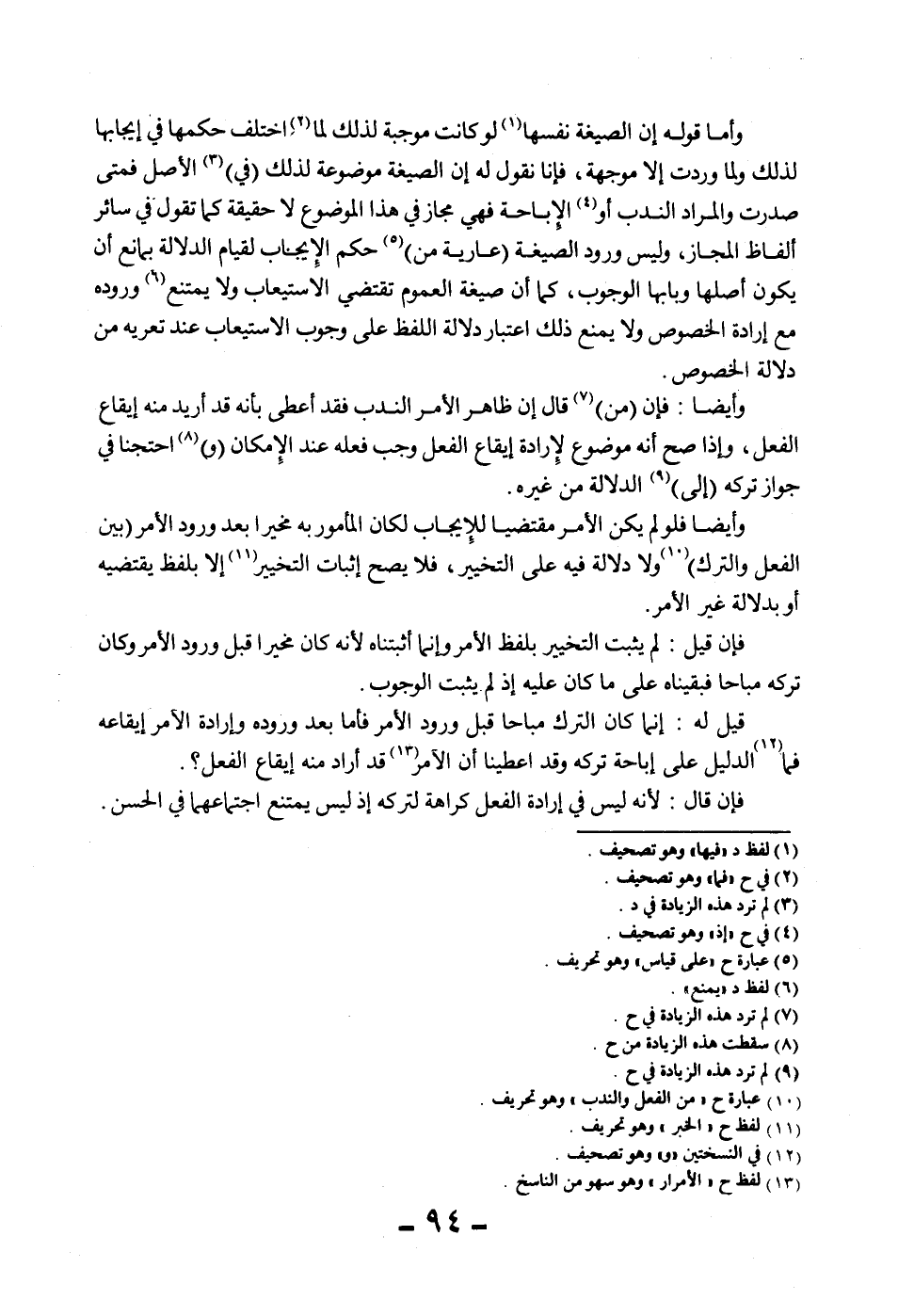 وَأَمَّا قَوْلُهُ إنَّ الصِّيغَةَ نَفْسَهَا لَوْ كَانَتْ مُوجِبَةً لِذَلِكَ لَمَا اخْتَلَفَ حُكْمُهَا فِي إيجَابِهَا لِذَلِكَ وَلَمَا وَرَدَتْ إلَّا مُوَجَّهَةً.