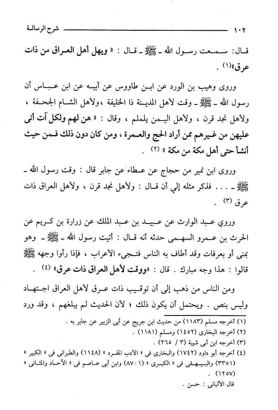 ومن الناس من ذهب إلى أن توقيب ذات عرق لأهل العراق اجتهاد وليس بنص. ويحتمل أن يكون ذلك؛ لأن الحديث لم يبلغهم، وقد ورد