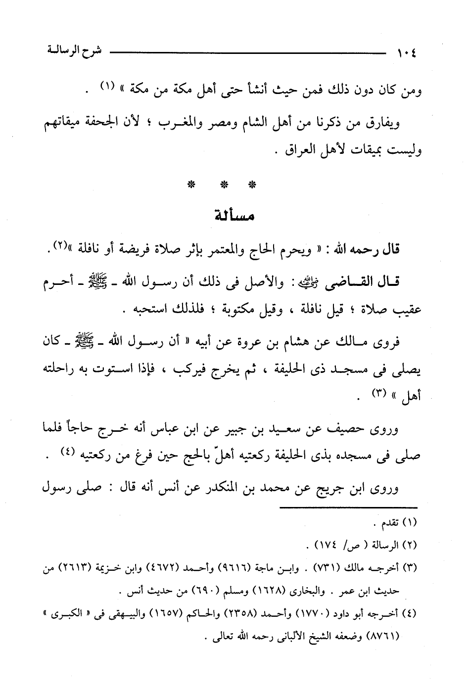 فروى مالك عن هشام بن عروة عن أبيه "أن رسول الله - صلى الله عليه وسلم - كان يصلى في مسجد ذي الحليفة، ثم يخرج فيركب، فإذا استوت به راحلته أهل".