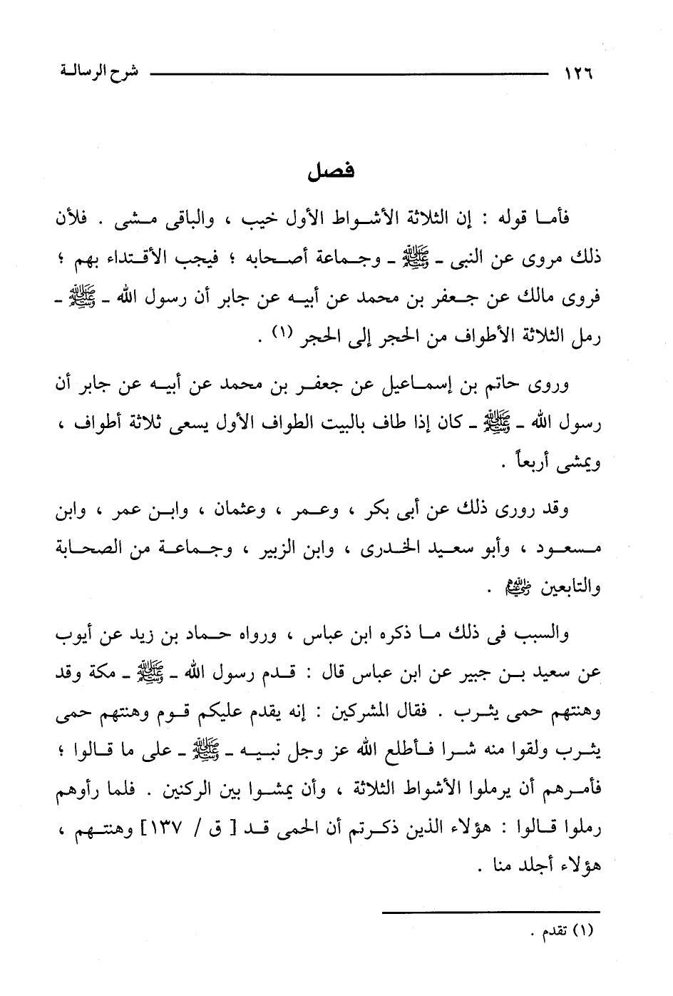 والسبب في ذلك ما ذكره ابن عباس، ورواه حماد بن زيد عن أيوب عن سعيد بن جبير عن ابن عباس قال: قدم رسول الله - صلى الله عليه وسلم - مكة وقد وهنتهم حمى يثرب. فقال المشركين: إنه يقدم عليكم قوم وهنتهم حمى يثرب ولقوا منه شرا فأطلع الله عز وجل نبيه - صلى الله عليه وسلم - على ما قالوا؛ فأمرهم أن يرملوا الأشواط الثلاثة، وأن يمشوا بين الركنين. فلما رأوهم رملوا قالوا: هؤلاء الذين ذكرتم أن الحمى قد [ق/ 137] وهنتهم، هؤلاء أجلد منا.