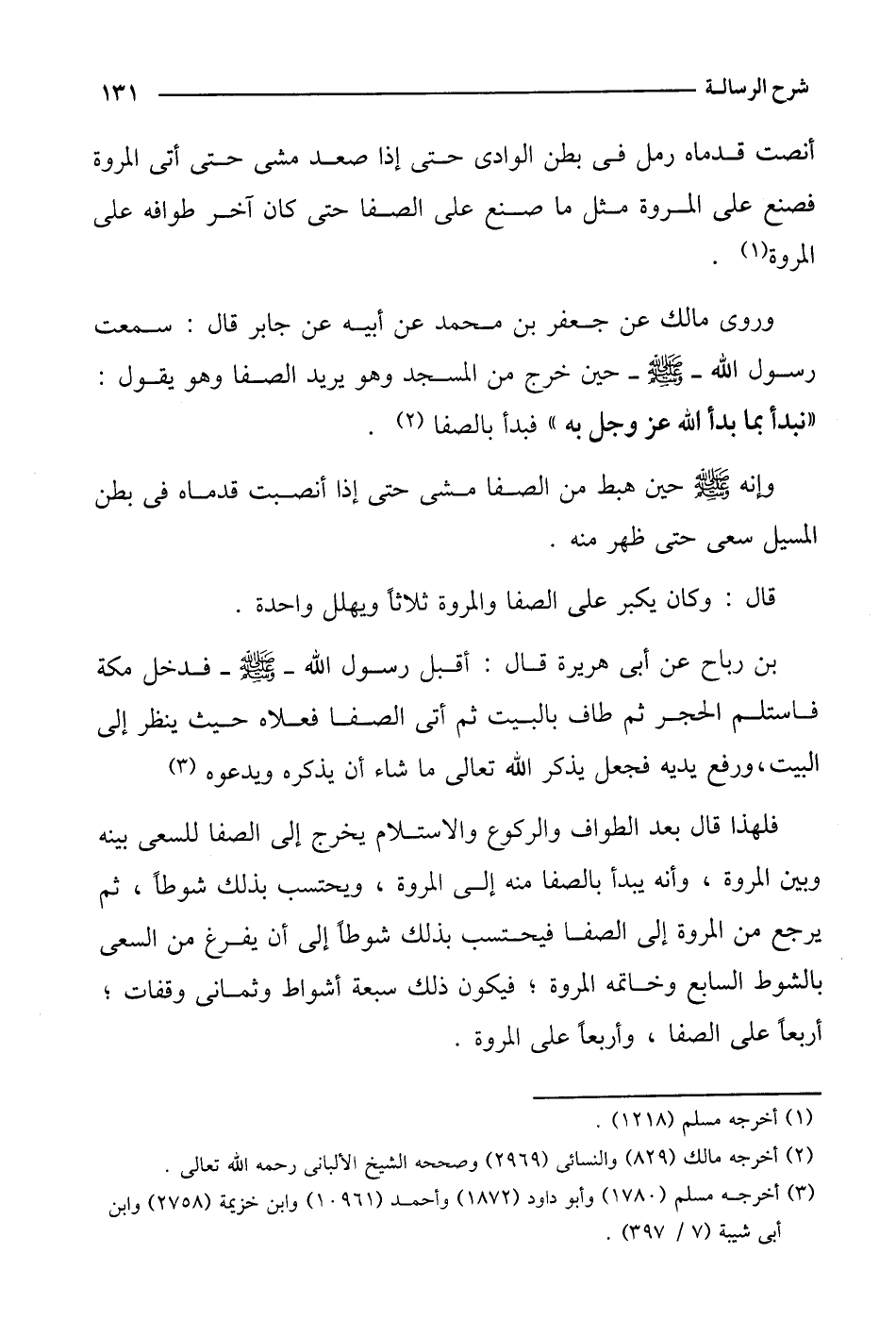 وروى مالك عن جعفر بن محمد عن أبيه عن جابر قال: سمعت رسول الله - صلى الله عليه وسلم - حين خرج من المسجد وهو يريد الصفا وهو يقول: "نبدأ بما بدأ الله عز وجل به" فبدأ بالصفا.