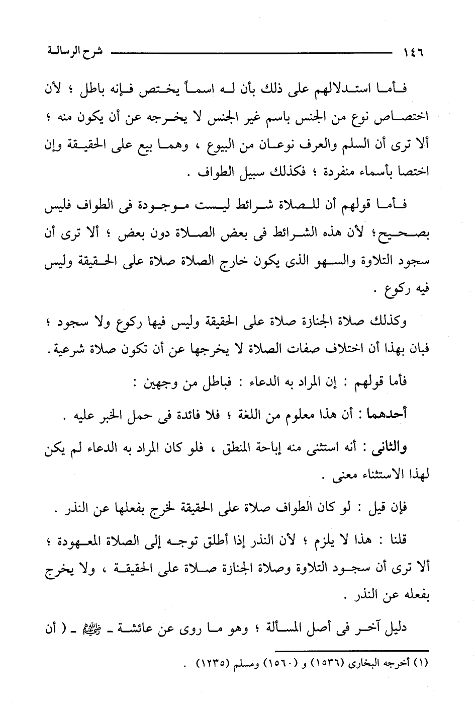فأما استدلالهم على ذلك بأن له اسمًا يختص فإنه باطل؛ لأن اختصاص نوع من الجنس باسم غير الجنس لا يخرجه عن أن يكون منه؛ ألا ترى أن السلم والعرف نوعان من البيوع، وهما بيع على الحقيقة وإن اختصا بأسماء منفردة؛ فكذلك سبيل الطواف.